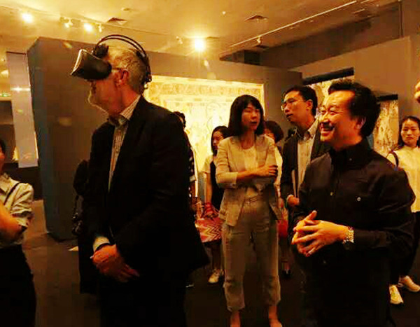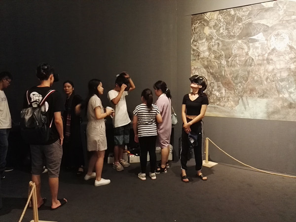 在2天的展覽中,師生們運用虛擬現實技術和VR一體機,為300多位來賓帶來了一場科學與藝術相融合的“龜茲佛窟和壁畫”藝術視覺盛宴。來賓們饒有興致地戴著VR一體機,津津有味地體驗虛擬現實技術的科技魅力,并與師生們深入地互動交流。市重點實驗室趙海英主任、鄭永彪副主任來到現場看望了犧牲周末休息時間為會展服務的同學們,勉勵大家發揚無私奉獻的精神,做好服務保障工作。