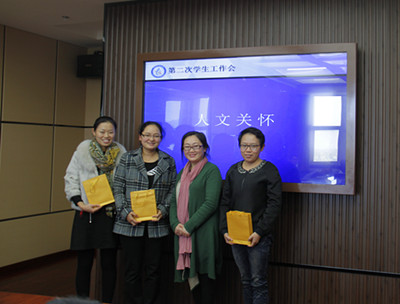 會議結束前,王卉處長代表學院給近期過生日的學生工作人員贈送禮物,表達學院對大家的關心之情。(學生處倪洋 供稿)