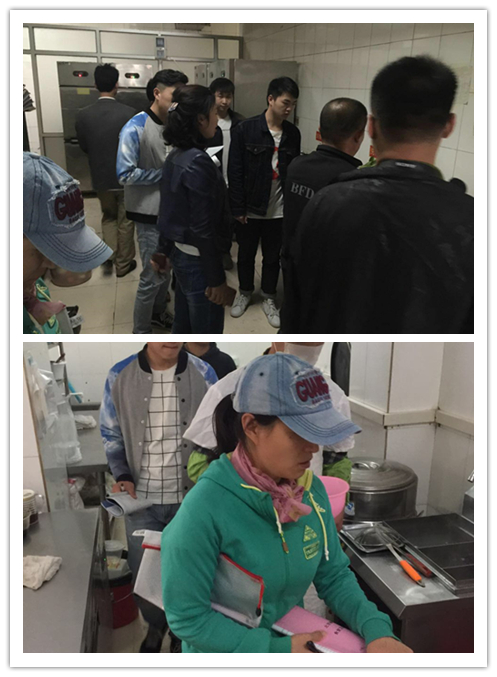 檢查團對后廚操作間、洗消間、庫房進行了重點檢查,并依據衛生評比條例進行了逐項評分。康莊食藥所的2位專家現場對我院食堂后廚存在的問題進行了指正、講解。