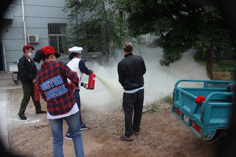 演練前,保衛(wèi)處付金晶老師就疏散路線、逃生要領(lǐng)進(jìn)行了培訓(xùn)。演練正式開始后,為了模擬真實(shí)場(chǎng)景,保衛(wèi)處在食堂二、三樓后廚放置了演習(xí)專用煙霧彈。煙霧瞬間籠罩后廚,食堂安全員發(fā)出“著火啦!斷電斷氣!快跑!”等火警信號(hào),指揮逃生。參訓(xùn)人員用濕毛巾捂住口鼻、彎腰、迅速有序逃生。在極短的時(shí)間內(nèi),所有人員全部疏散到安全地帶。人員集中后,保衛(wèi)處李麗娟對(duì)滅火器使用步驟及要點(diǎn)進(jìn)行了介紹。隨后,演練人員分組進(jìn)行滅火訓(xùn)練。