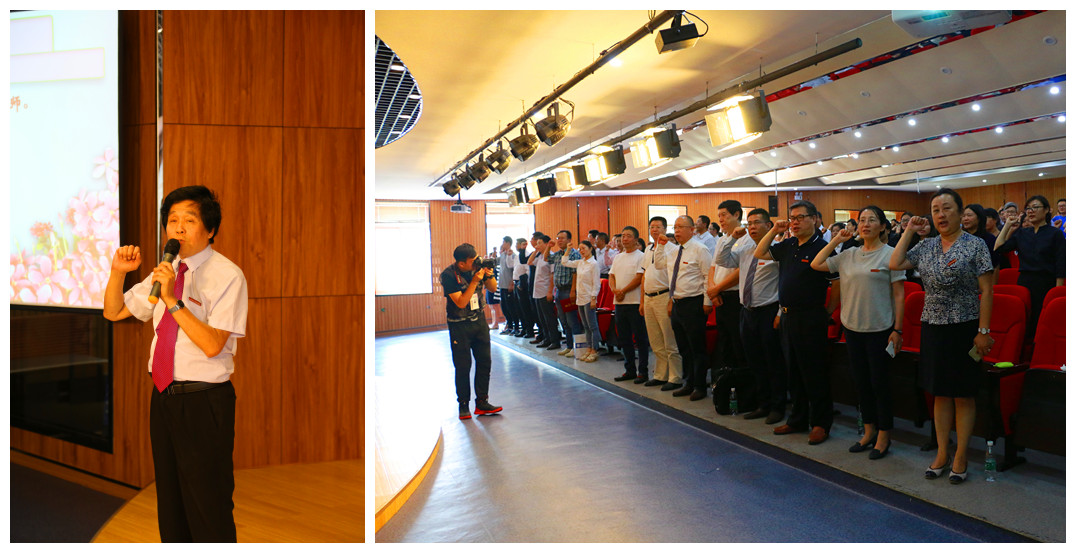 大會的最后一項,也是本次大會的高潮,是由藝術與傳媒學院院長胡杰帶領全體教師莊嚴宣誓:“我,莊嚴宣誓,忠于人民教育事業,貫徹黨的教育方針,履行教師神圣職責,傳承文明,啟智求真;修身立德,為人師表……”鏗鏘有力地字句回蕩在現場,世紀教師們將用實際行動踐行這段誓言。
