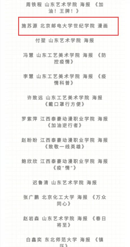 毛辰 北京郵電大學世紀學院 海報 《全民皆兵戰勝新冠》
