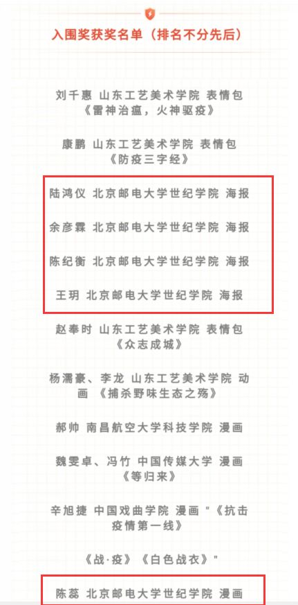 我院藝術與傳媒學院共報學生參賽作品20篇,其中賈思亮同學榮獲“優秀獎”,陸鴻儀、陳紀衡等10名同學榮獲“入圍獎”。從同學們的熱情中不難看出,廣大師生對抗疫的勝利是志在必得的,用手中的畫筆為抗疫增添一份力量,為疫情防控注射“文化疫苗”。
