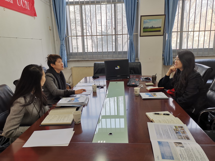 首先,丁處長代表世紀學院對Huan Ding主任一行的來訪表示熱烈歡迎,并對我院辦學基本狀況、辦學特色、師資力量、重點實驗室研究領域、中外合作辦學以及國際合作交流情況進行了介紹。