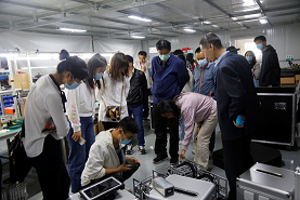 隨后,全體教師到中關(guān)村e谷無人機檢測中心進行觀摩,參觀了高低溫測試實驗室、防水測試實驗室、電池安全測試實驗室等試驗中心。參觀結(jié)束后,所有人共同觀看了大工系留無人機的實際飛行展示,并參觀了北京大工裝備延慶無人機基地的實際生產(chǎn)車間及大工給中央電視臺等客戶定制的成品實物。雙方就系留箱、系留線纜、飛控等環(huán)節(jié)的原理進行深度交流。