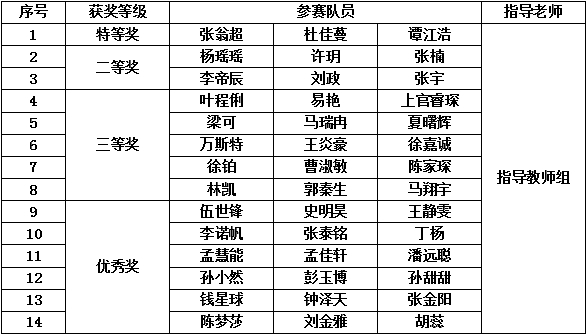 我院21支隊伍參加了4月15日至4月18日第一階段的比賽,獲得一等獎1項,二等獎2項,三等獎13項,優秀獎5項。此后,老師們及時組織培訓,總結第一階段的得失,同學們再接再厲,14支隊伍參加了5月13日至5月16日第二階段的比賽,最終取得了令人滿意的成績。在培訓及比賽期間,得到學院領導的大力支持,教務處和多個教學單位的積極協助。