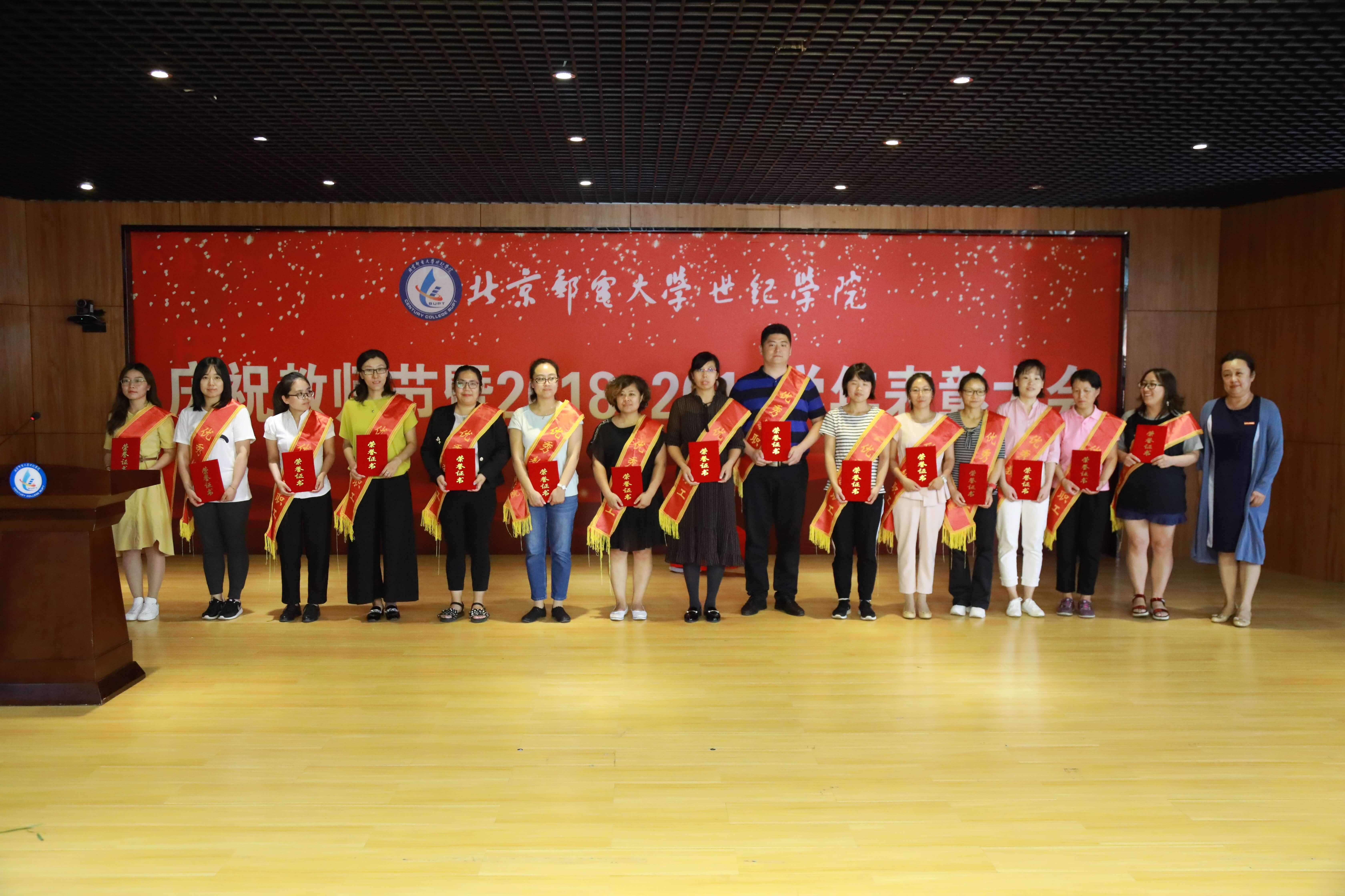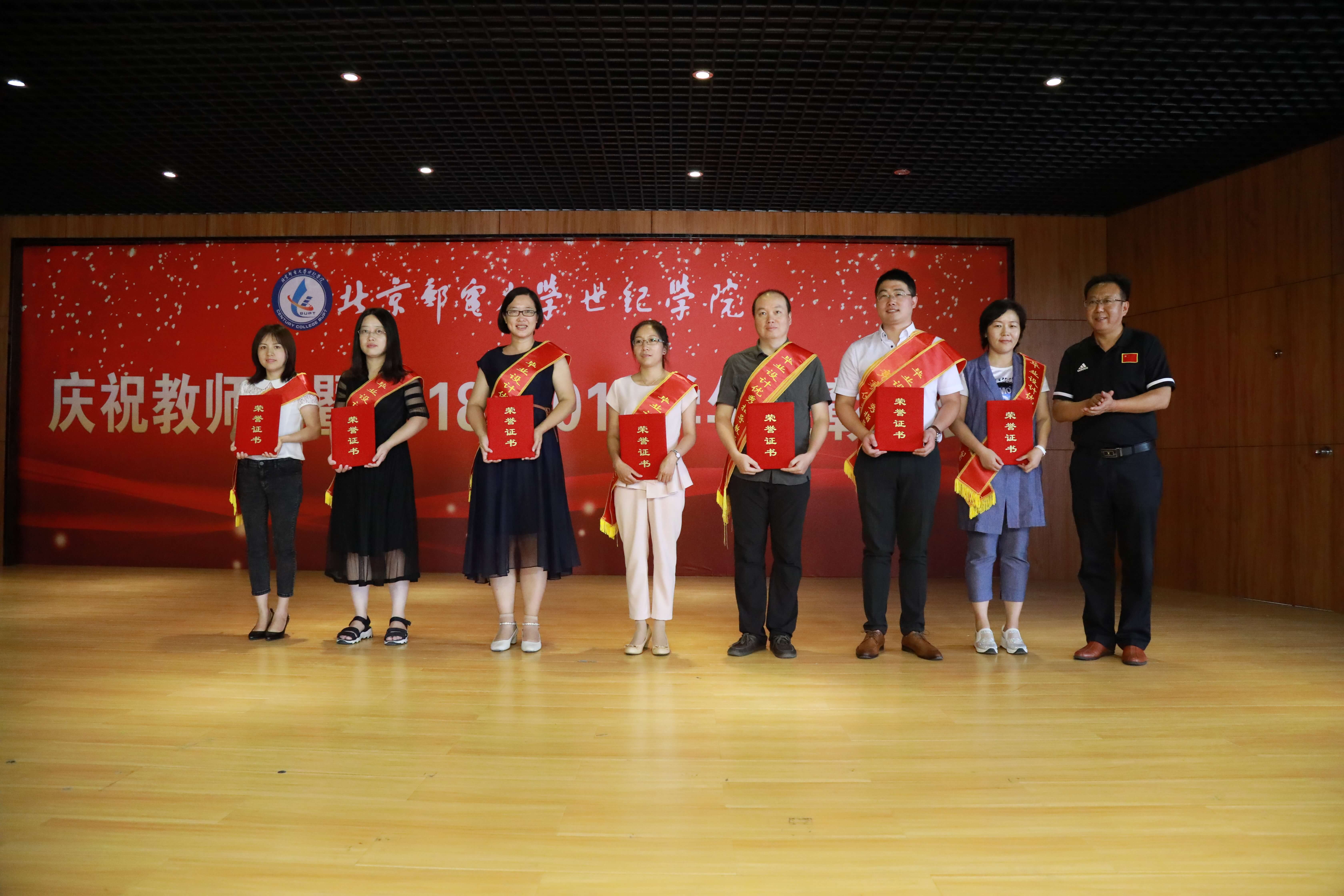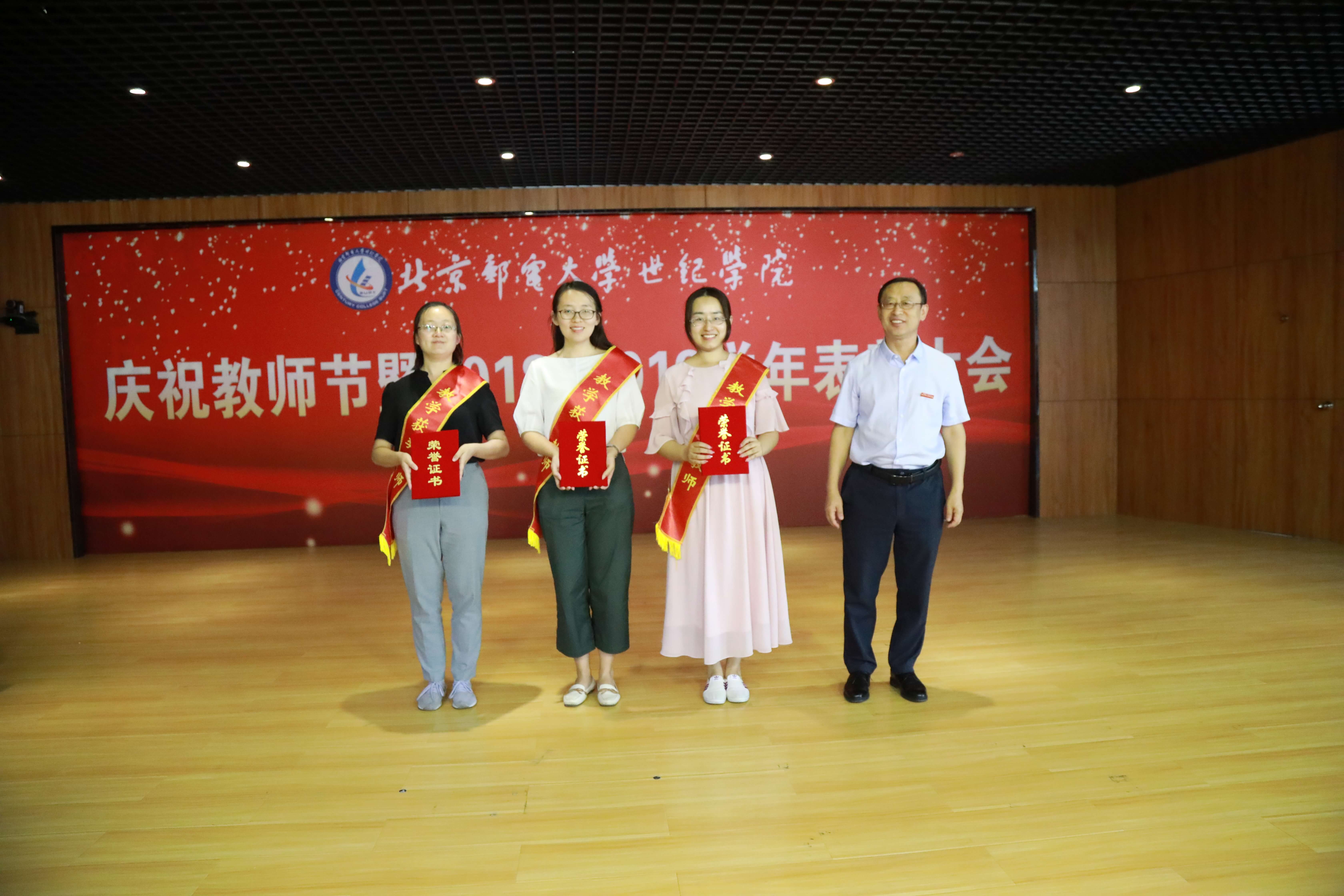 在雄壯的國歌聲中,大會正式開始。與會領導分別為2018-2019學年度突出貢獻個人、優秀干部、優秀教職工、優秀輔導員、教學獲獎教師、青年教師“教學基本功大賽”獲獎教師、優秀學科競賽指導教師、畢業設計(論文)優秀指導教師頒發榮譽證書并合影留念。外語系主任秦罡引,電子與自動化系教師杜永博,通信與信息工程系輔導員楊松亮分別代表以上獲獎者發言。秦罡引主任在學院的評優工作中連續三年被評為優秀干部,長期奮斗在教學、科研一線,在她的領導下,外語系的各項工作都取得了豐碩的成果。杜永博老師在學院2018年度青年教師“教學基本功”大賽中獲得了一等獎,并代表我院參加了北京市高校第十一屆青年教師“教學基本功”大賽,最終斬獲大賽工科類綜合獎項B組三等獎,實現了學院在北京高校青年教師“教學基本功”大賽上零的突破。楊松亮老師獲評2019年度全國優秀民辦高校輔導員,也是本年度北京唯一一個獲此殊榮的獨立學院輔導員。 他(她)們對世紀學院豐沛的感情、對教師職業深沉的熱愛,對所有學生無私的奉獻,對作為世紀人的自豪感,通過短短的言語表達得淋漓盡致。
