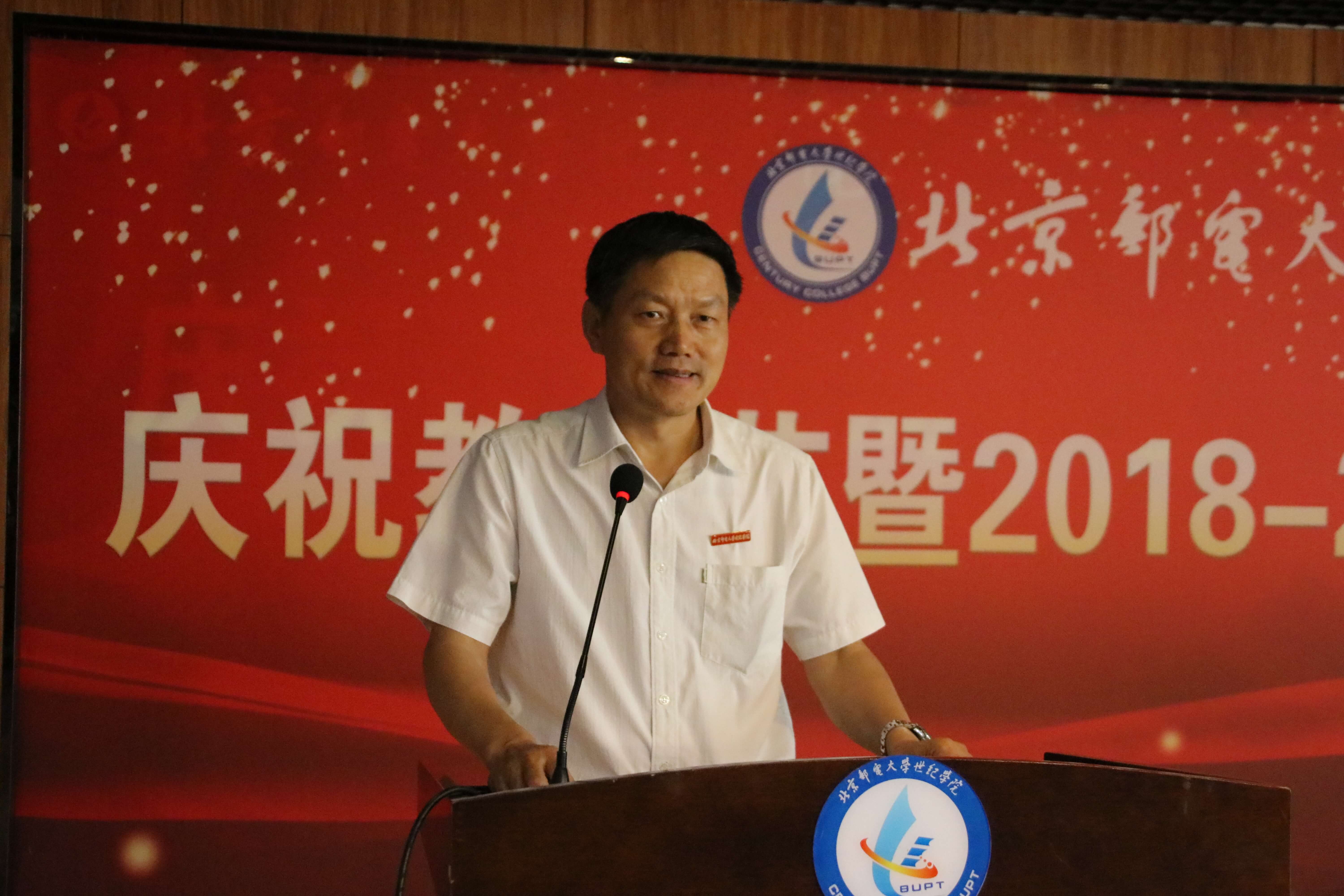 春華秋實,神州溢彩。金秋九月是北京最美好的季節,也是我們北京郵電大學世紀學院一年中最重要的時刻之一,我們剛剛迎來1200多名朝氣蓬勃、豪情滿懷的新同學,今天又在這里隆重集會,慶祝屬于我們自己的教師節,收獲鮮花、掌聲、歡樂和祝福。在此,我代表學院向全體世紀學院教師致以最崇高的敬意!并真誠地對大家說一聲:“節日快樂!老師們,你們辛苦了!”同時,我也要向所有為世紀學院建設和發展做出貢獻的教職員工表示衷心的感謝并致以最美好的祝愿!向今天所有獲獎的教職員工表示最熱烈的祝賀!