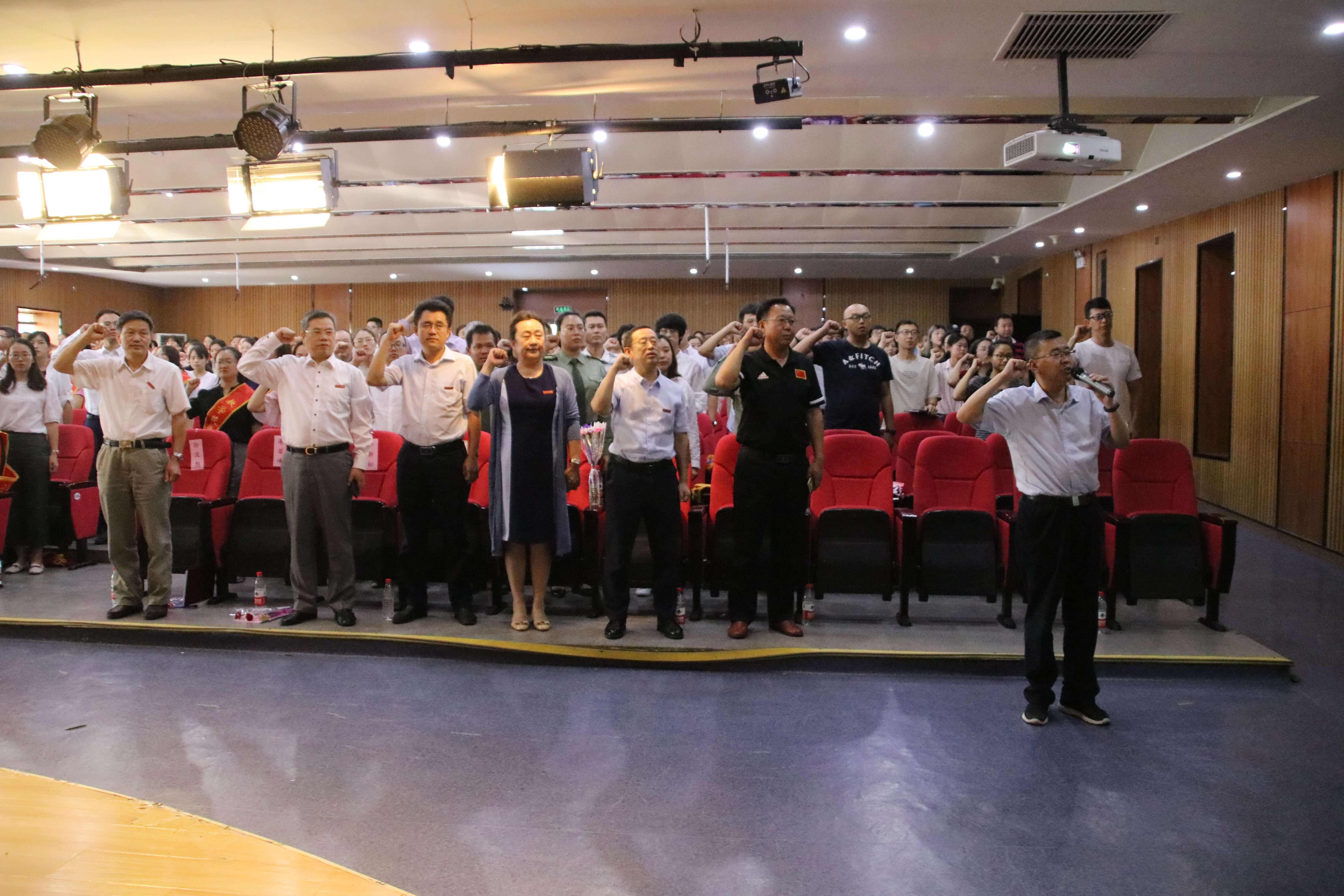 大會臨近尾聲,經濟管理系主任、優秀干部代表李保升帶領全體教師莊嚴宣誓:“我志愿成為一名人民教師,忠誠黨的教育事業,遵守教育法律法規,履行教書育人職責,引領學生健康成長……”鏗鏘有力地字句回蕩在會場上空。