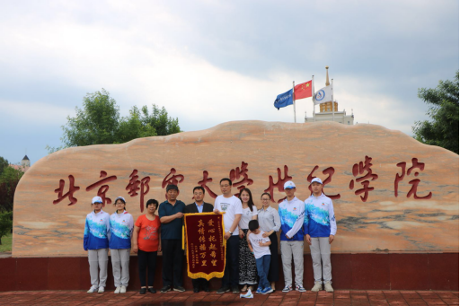 5月26日,陰雨綿綿,來自通州的一家人將一面寫有“愛心托起希望,真情傳播萬里”的錦旗,專程送到了北京郵電大學世紀學院,以表達對我院世園會志愿者團隊的感謝。