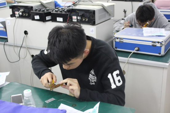 決賽的題目是焊接收音機套件,主要考察學生的動手能力。比賽時長3個小時,同學們爭分奪秒,在關鍵的調音和調臺部分,
