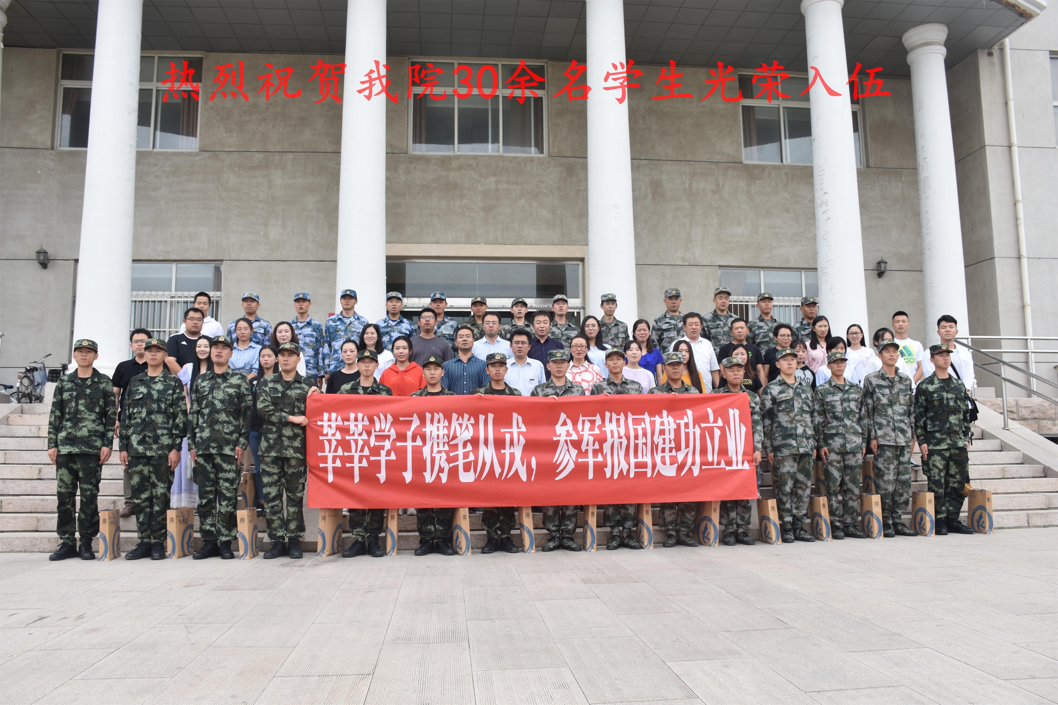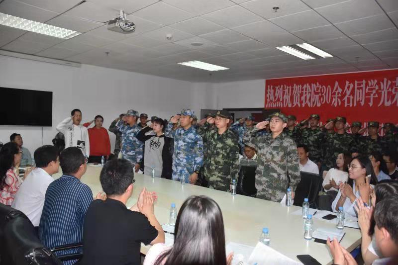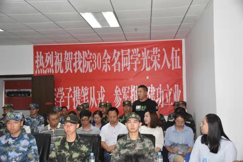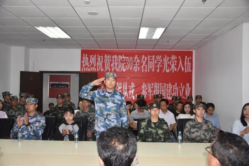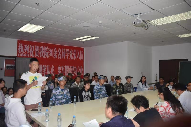 隨后,參加歡送會的入伍學生表達了他們立志軍營、報效祖國的決心和意志以及對學院老師、同學的感激和不舍之情。