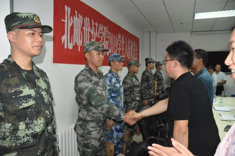 與會的老師也向新兵們表達了他們誠摯的關懷以及殷切的希望,在步入軍營后,要盡快適應軍營生活、早日完成大學生到軍人的身份轉變,要肯吃苦、莫怕累,積極爭取機會為軍營做貢獻,做一名出色的人民解放軍。