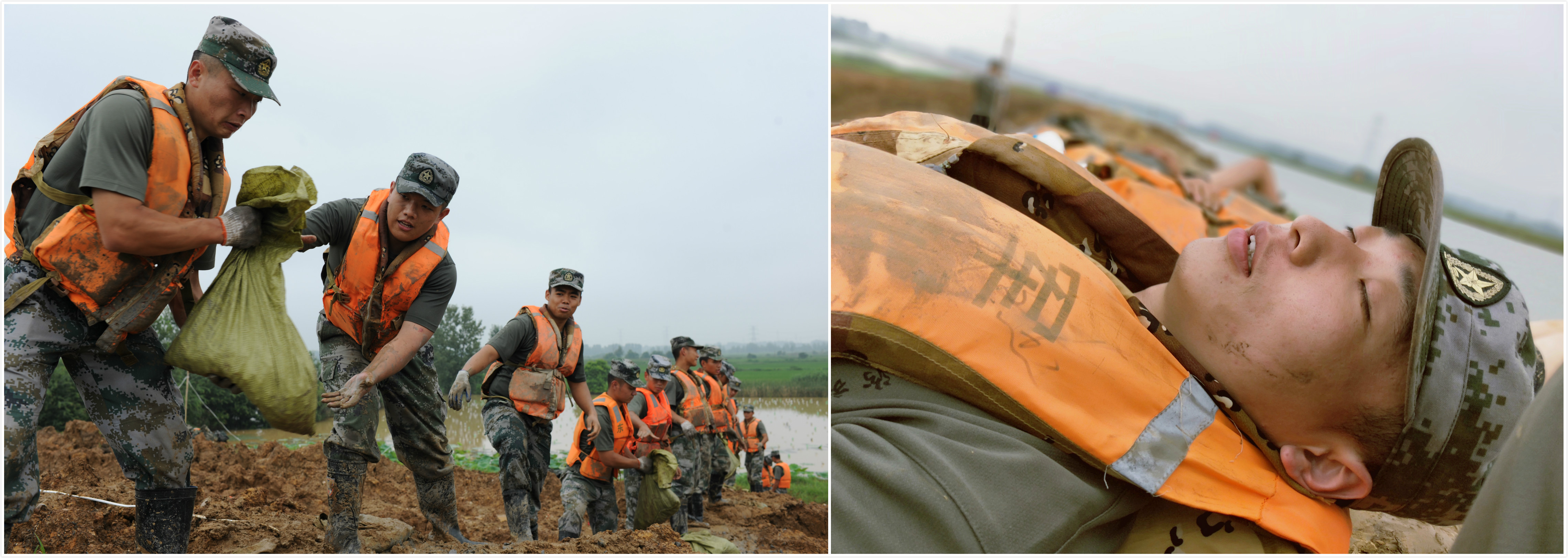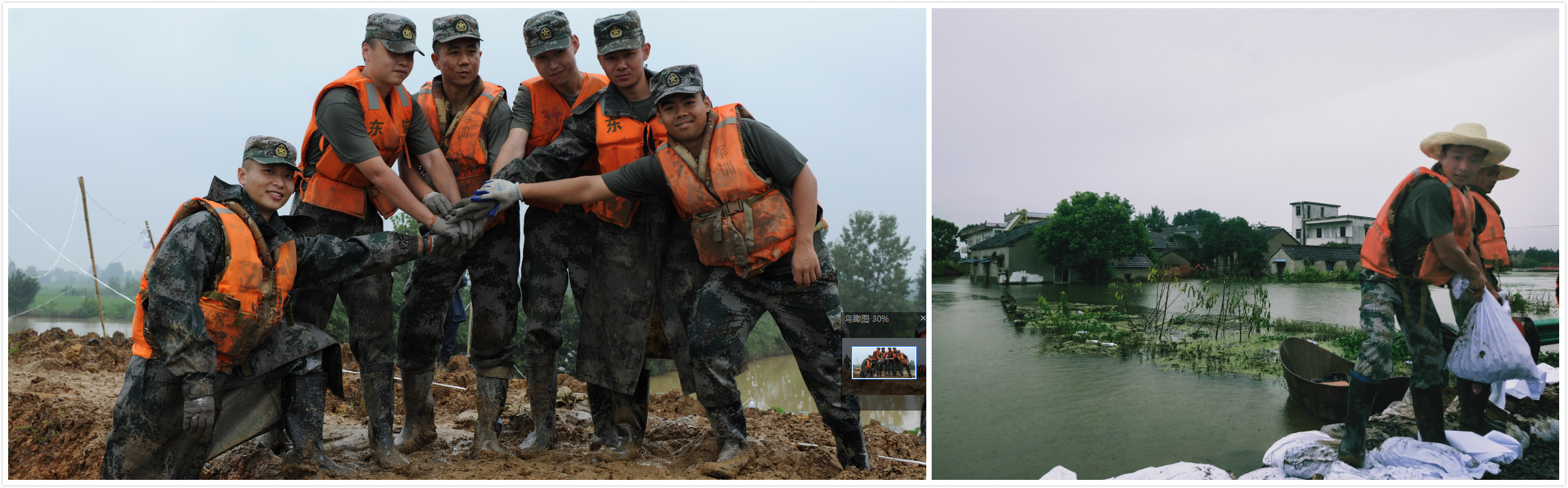 7月上旬,長江流域平均降雨量達到近60年同期最多,安徽省長江、淮河干流全線超警戒水位,防汛形勢異常嚴峻。解放軍73096部隊奉命開拔,火速進駐馬鞍山3縣10點位,與當地群眾一道,全力投入防大險、救大災的人民戰爭。徐慶同志得知此情后,主動向服役期間所在連隊黨支部遞交請戰書,經組織批準后,第一時間奔赴災區,與戰友們一起成立老兵突擊隊投入戰斗。在執行任務中,徐慶同志艱苦奮戰,頂風冒雨,清淤排澇,筑堤圍堰,固堤守壩。抗洪救災期間,他聽從指揮、連續作戰,大腿、胳膊等處掛彩對他來說是家常便飯,他的皮膚也在連日的洪水浸泡和烈日曝曬中變得又黑又粗糙,他迎難而上,不畏艱辛,為抗洪搶險救災做出了不可磨滅的貢獻。