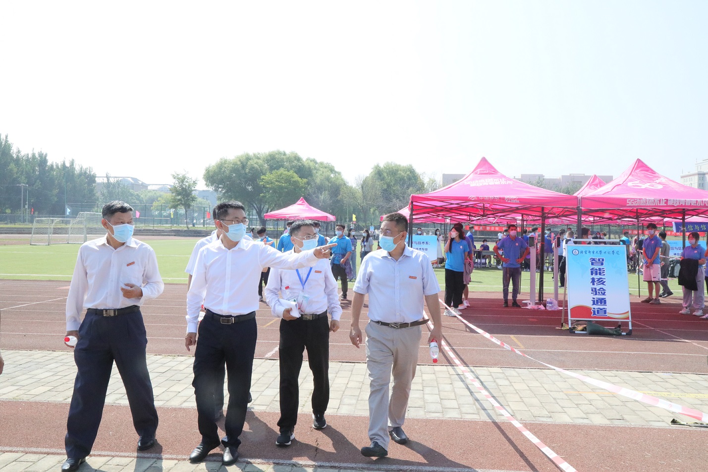 隨后,柳副主任一行按照學院開學返校工作方案現場對照檢查了迎新場地、健康觀察點、新生宿舍、食堂及實驗樓等地的工作準備情況,親切慰問了迎新志愿者,對學院入校核驗嚴手續、“四方”“四早”嚴落實、聲控電梯免接觸等防控工作給予了高度肯定并提出指導意見。孫漢旭院長表示,學院將按照“積極、穩妥、循序、安全”的工作原則,堅持“外防輸入、內防反彈”不放松,毫不松懈抓好校園疫情常態化防控。