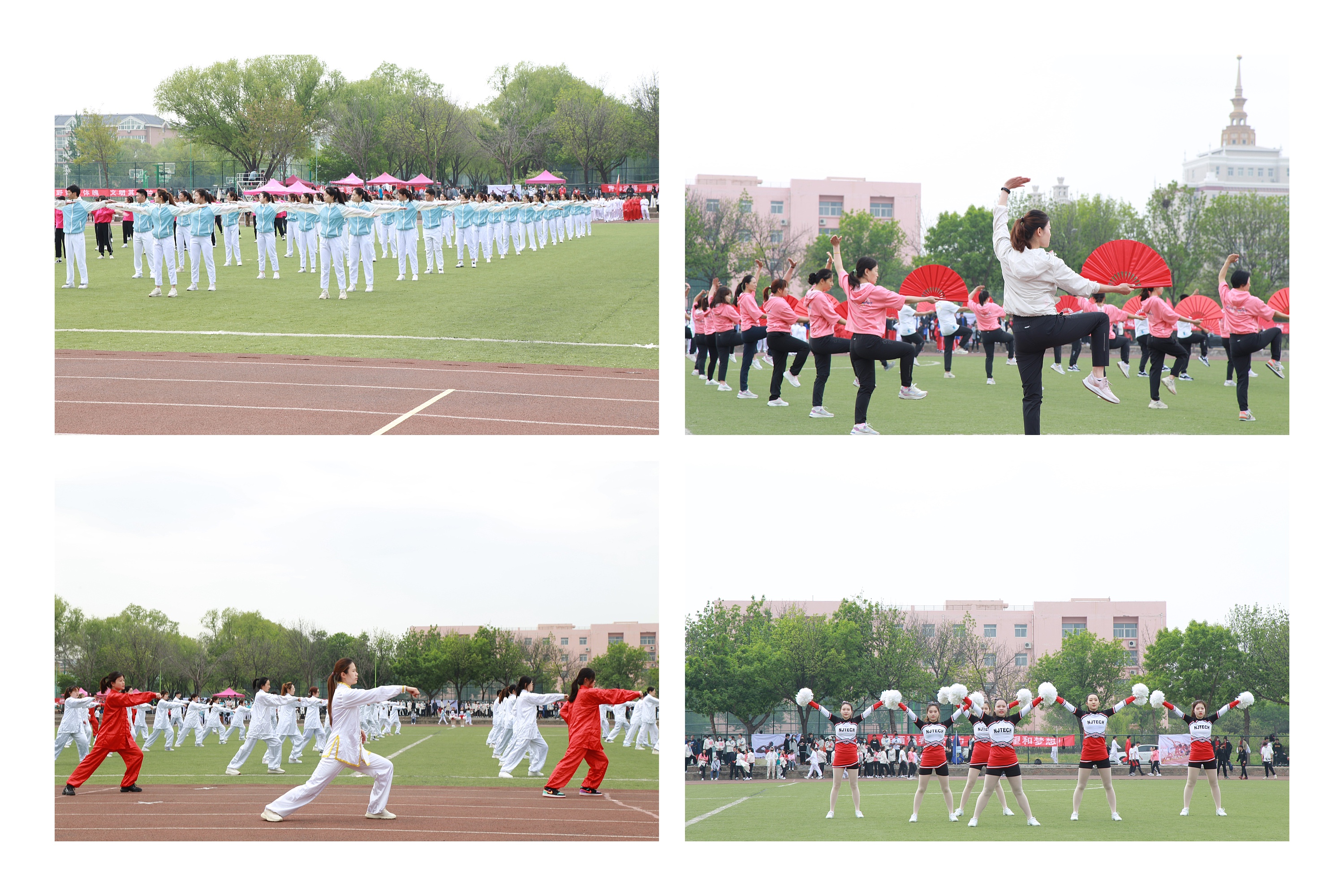 學生廣播體操比賽、教職工太極扇比賽、學生武術表演、校健美操隊啦啦操表演
