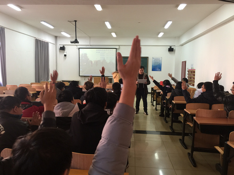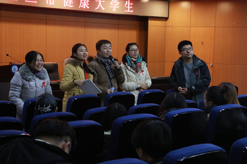 12月1日,在傳媒學院、通信系、計科系部分班級的班會上,由后勤處副處長周文照、學生處副處長岳鑫、后勤處老師梁凡組成的宣講團隊在傳媒學院院長助理姬世祥、通信系輔導員馮舒、計科系輔導員李熠的協助下,用題板展示、答題送禮的形式宣傳艾滋病防治知識。同學們踴躍舉手答題,工作人員耐心細致地宣講,現場氣氛熱烈而友好。