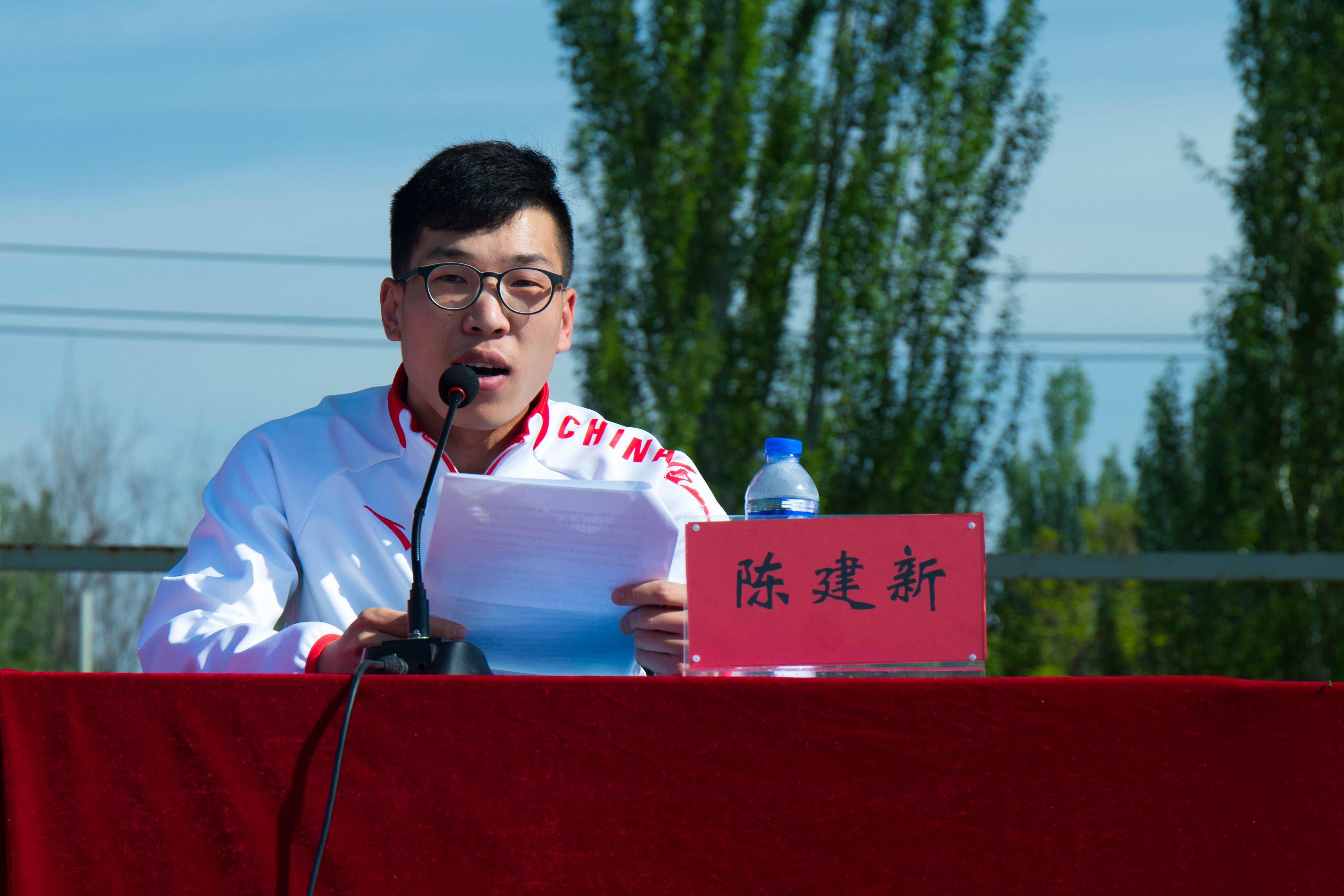 開幕式特邀嘉賓、平昌冬殘奧會輪椅冰壺冠軍陳建新致辭。他結合自己的運動比賽經歷,鼓勵世紀師生們發揚更高更快更強的奧林匹克精神,充分享受運動帶來的快樂。