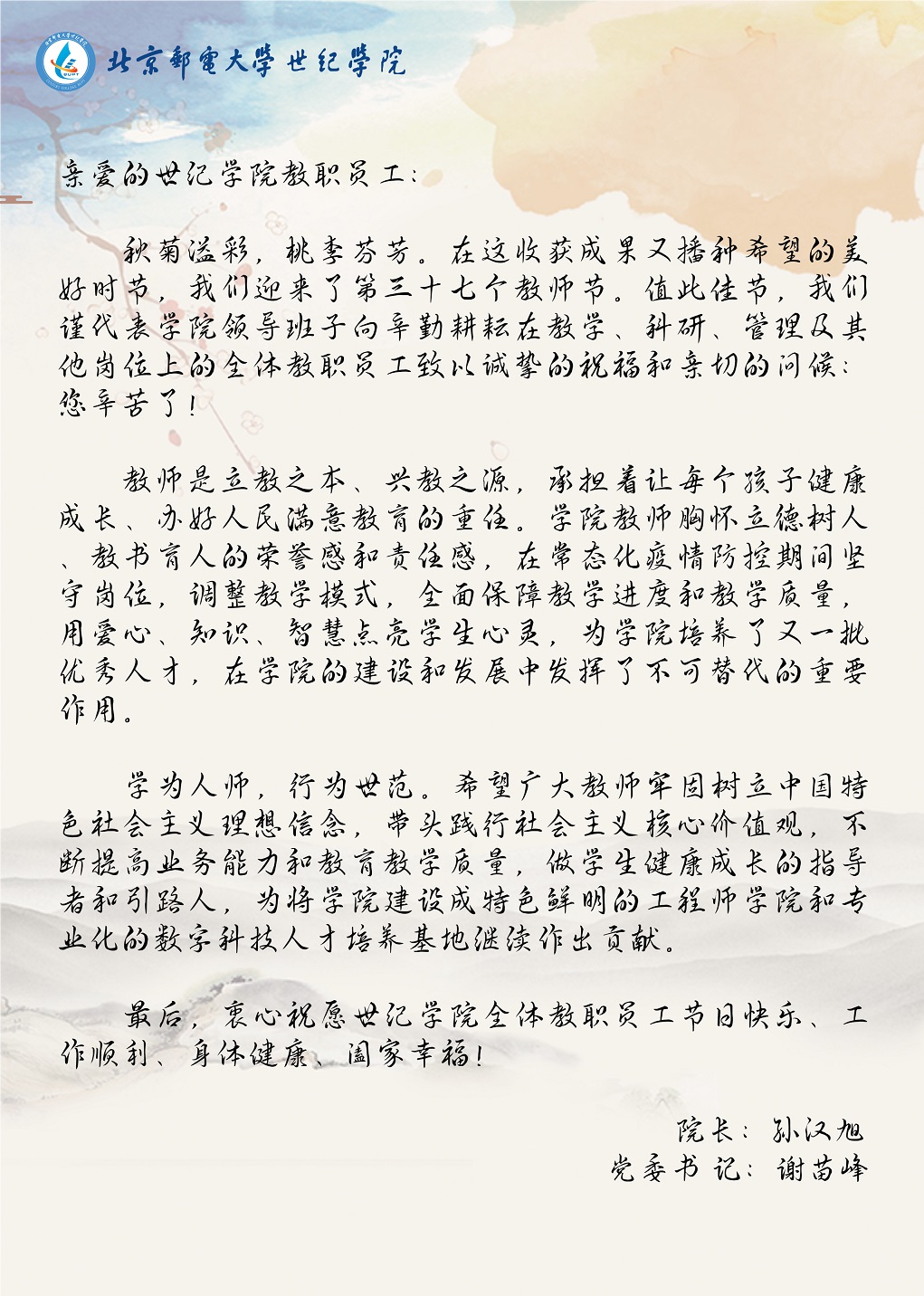 賡續(xù)百年初心,擔(dān)當(dāng)育人使命——學(xué)院在第37個教師節(jié)祝全體教職員工節(jié)日快樂