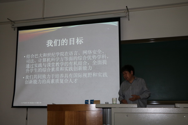 會上,雙方就復合型人才的培養進行了深入交流。針對合作的“高科技犯罪-網絡安全管理”碩士項目、人類安全專業碩士項目以及法務會計專業碩士項目,雙方就入學時間、課程設置、學費等問題進行討論并達成了初步共識。同時我院邀請趙松老師面向全體學生進行“國際視野-巴爾的摩大學”講座。
