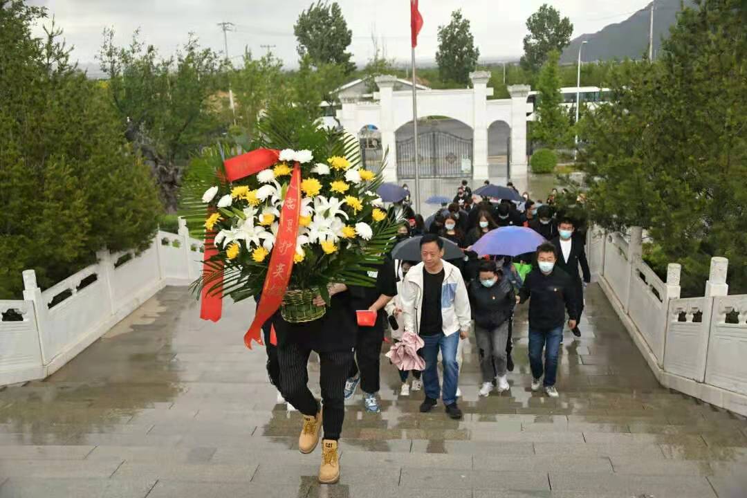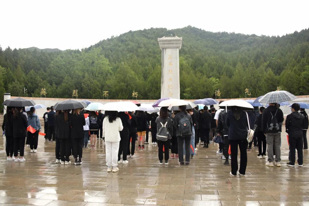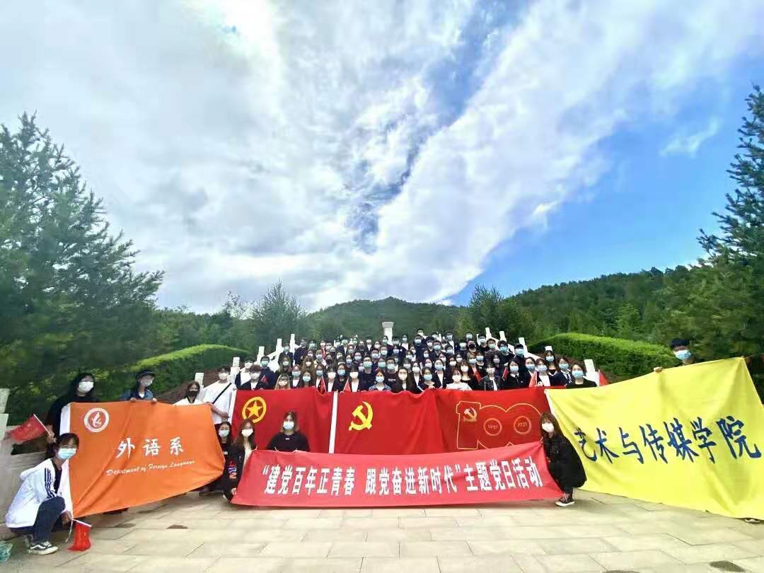 為致敬革命先烈,突出儀式教育感召作用,引導廣大青年踐行社會主義核心價值觀,傳承紅色基因,應昌平區社區青年匯邀請,2021年5月26日藝術與傳媒學院、外語系依托首都紅色教育資源,聯合組織師生黨員、入黨積極分子、團員青年代表共100人冒雨前往昌平西峰山烈士陵園和革命紀念館,開展“建黨百年正青春,跟黨奮進新時代”主題黨團日活動。傳媒院教工黨支部書記姬世祥主持此次活動。
