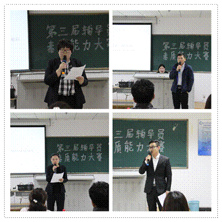 為深入學(xué)習(xí)貫徹習(xí)近平新時(shí)代中國(guó)特色社會(huì)主義思想和黨的十九大精神,全面貫徹落實(shí)全國(guó)高校思想政治工作會(huì)議,根據(jù)《普通高等學(xué)校輔導(dǎo)員隊(duì)伍建設(shè)規(guī)定》《高等學(xué)校輔導(dǎo)員職業(yè)能力標(biāo)準(zhǔn)(暫行)》要求,進(jìn)一步加強(qiáng)和改進(jìn)大學(xué)生思想政治教育,提升輔導(dǎo)員專(zhuān)業(yè)技能和業(yè)務(wù)素質(zhì),4月23日,學(xué)院舉行第三屆輔導(dǎo)員素質(zhì)能力大賽決賽。