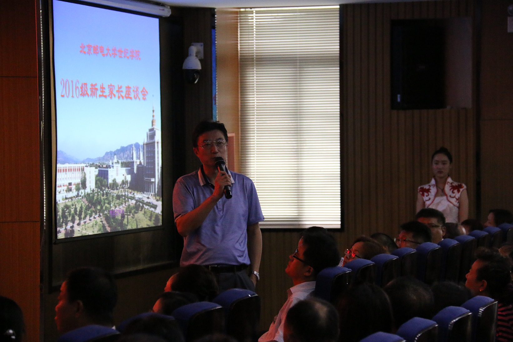 8月18日,秋雨霏霏,飄飄灑灑。濕漉漉的天氣卻絲毫沒有影響2016級新生來校報道的熱情。下午13:30分,學院在學思樓229報告廳組織召開了2016級新生家長座談會,會場座無虛席。學院黨委副書記兼副院長孫凱,副院長夏素霞、何曉玫以及部分職能部門、教學單位負責人出席了會議。座談會由綜合辦公室副主任樊薇主持。