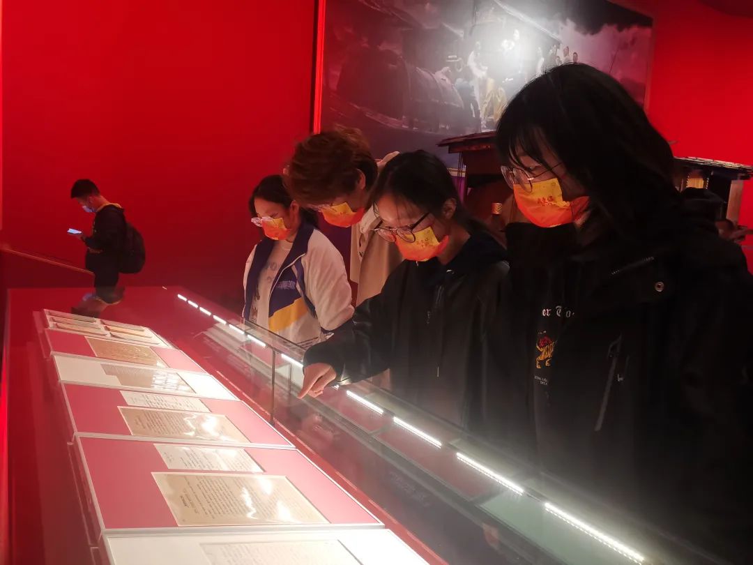 步入展廳,在講解員的帶領下,沿著“站起來、富起來、強起來”的歷史脈絡,同學們依次參觀了“建立中國共產黨,奪取新民主主義革命偉大勝利”“成立中華人民共和國,進行社會主義革命和建設”“實行改革開放,開創和發展中國特色社會主義”“推進中國特色社會主義進入新時代,全面建成小康社會,開啟全面建設社會主義現代化國家新征程”4個部分的內容。大量的圖片和文物實物,全方位、全過程、全景式、史詩般地反映了黨的百年輝煌,廣大師生深刻理解了黨的不懈奮斗史、不怕犧牲史、理論探索史、為民造福史、自身建設史,深刻體會到我們黨的一百年,是矢志踐行初心使命的一百年,是篳路藍縷建基立業的一百年,是創造輝煌開辟未來的一百年。