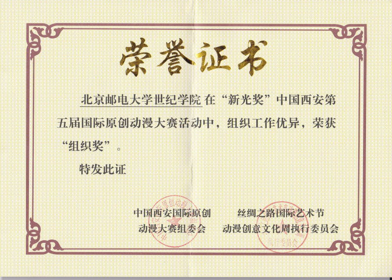 9月13日,藝術與傳媒學院代表我院參加“2016‘新光獎’中國西安第五屆國際原創動漫大賽”頒獎典禮。在本次大賽上,我院共選送7件動漫作品,最終入圍2件,其中作品《北極村》入圍“最佳動畫短片獎”,《垃圾桶的反抗》入圍“最佳形象表情獎”,同時我院獲得“組織獎”。