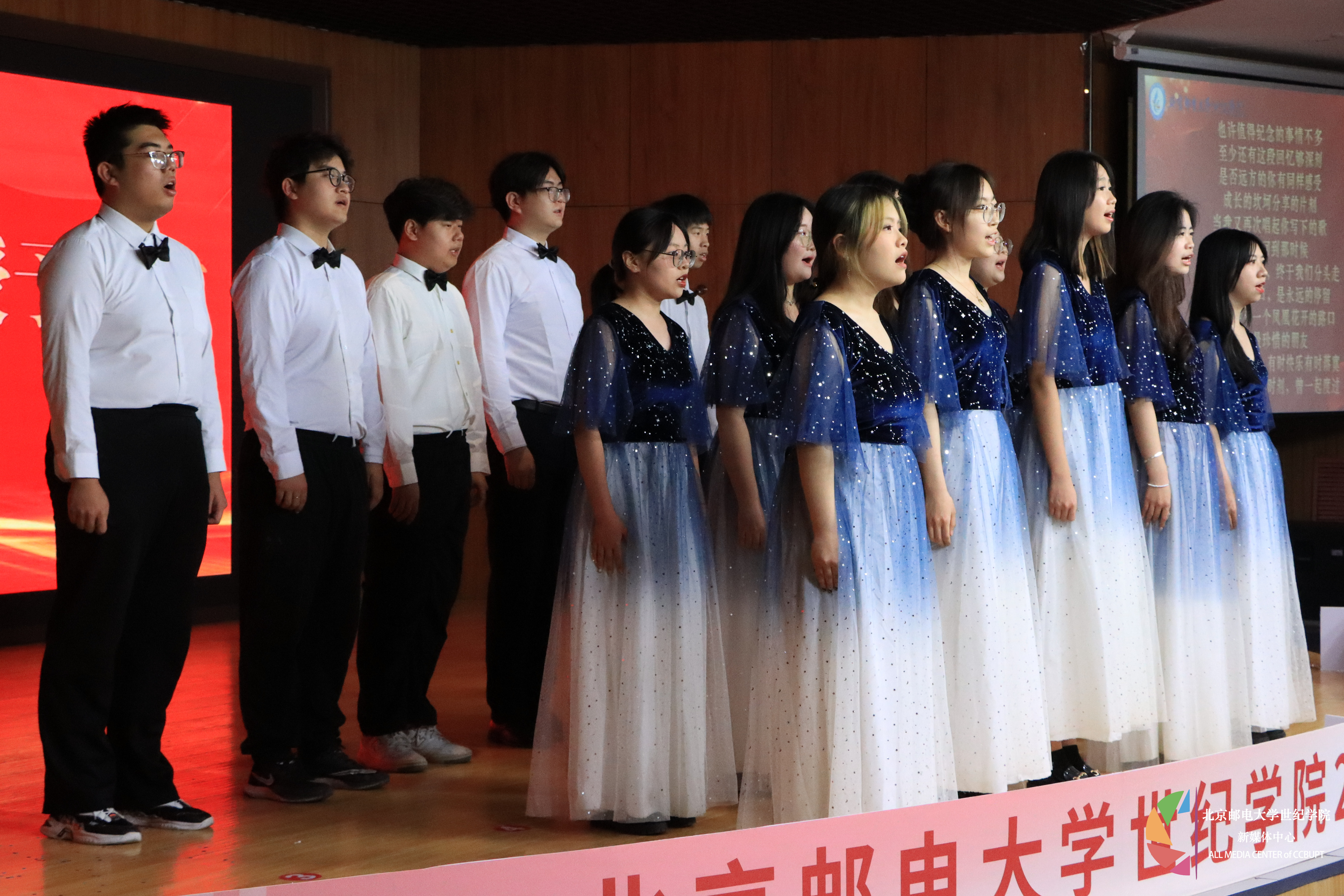 院合唱團唱起《鳳凰花開的路口》,在這溫暖的送別歌聲中,北京郵電大學世紀學院2024屆畢業典禮圓滿結束。(綜合辦公室季書一 供稿、新媒體中心供圖)