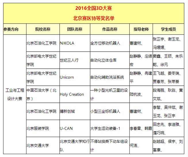 近日,在第9屆全國3D大賽(3DDS,全稱“全國三維數字化創新設計大賽”)北京市賽區的比賽中,我院機械電子工程專業的2支隊伍均榮獲特等獎!