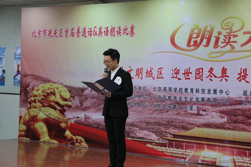 本次比賽由北京高等學校教育科技發展中心及延慶區志愿服務聯合會主辦、我院及北京國輝偉業文化發展有限公司承辦、北京市延慶區第二小學協辦,旨在通過選手們的學習交流,加強日常學、練、講,養成主動張口的習慣,逐步達到國家要求的語言標準化、規范化。比賽邀請了北京教育考試院-倫敦三一學院、英語口語等級考試高級考官張洪兵、馬小玲,延慶區社教中心英語高級教師、北京英語口語高級考官張瑩,北京市語言文字測試中心普通話水平測試骨干測試員、延慶區語言文字工作委員會教師劉德華以及我院外語系副教授杜喜義5位老師擔任評委。