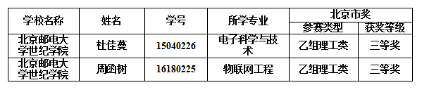 日前,從北京數學會大學委員會、北京高等教學會數學研究會獲悉,在北京市第28屆大學生數學競賽中,我院2015級電子科學與技術專業杜佳蔓、2016級物聯網專業周函樹2位同學分別獲得北京市三等獎。
