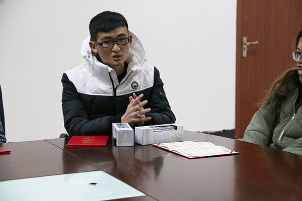 張欣老師首先宣讀了“優秀讀者”獲獎名單,楊明助理為獲獎同學頒發了榮譽證書及紀念品。他對獲獎同學表示祝賀,鼓勵大家帶動身邊更多的同學走進圖書館,并以“如何更高效地利用圖書館”為主題與大家進行了熱烈的討論。
