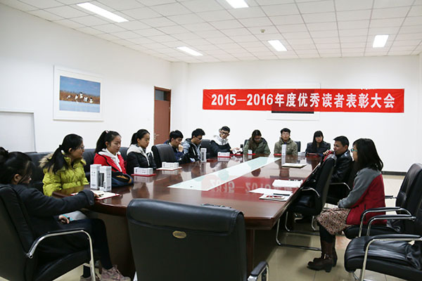 11月22日,圖書館舉辦了2015-2016年度“優秀讀者”表彰暨座談會。圖書館館長助理楊明及相關部門老師、“優秀讀者”獲獎者出席了表彰會。會議由圖書館讀者服務部張欣老師主持。