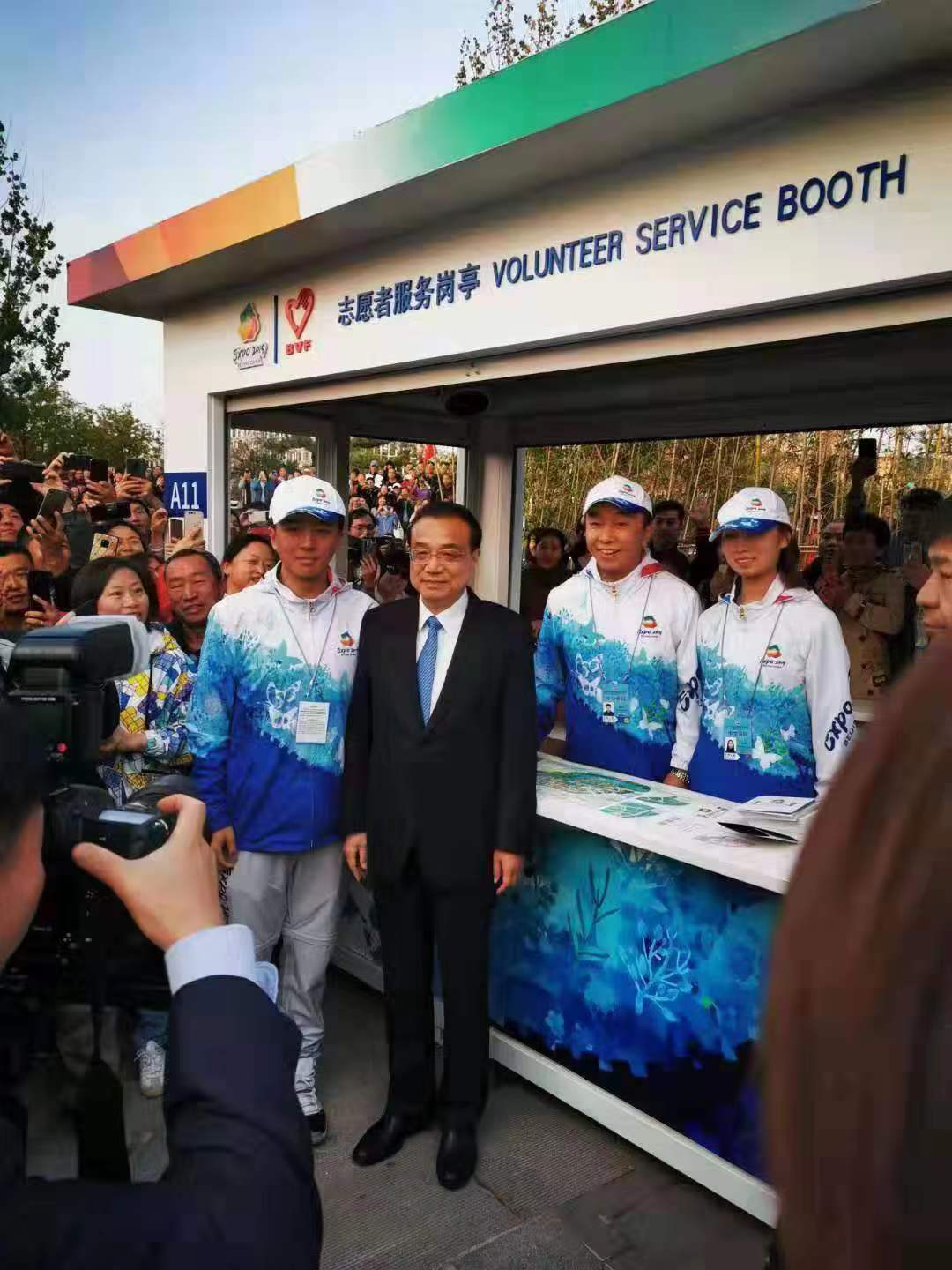 下午4時許,國務院總理李克強一行參觀了中華園藝展——北京園。學院正在A11崗亭服務的志愿者姬世祥、吳京澤、張宇欣見李克強總理走出北京園院落 展區時,便和周圍群眾一起激動地大聲向總理問好“總理好!總理好!”克強總理微笑著向志愿者們招手,并來到了志愿者崗亭前,與三位志愿者一一握手表示慰問并叮囑他們:“志愿者辛苦了,要為游客做好服務。”隨后,克強總理與三位志愿者合影留念。