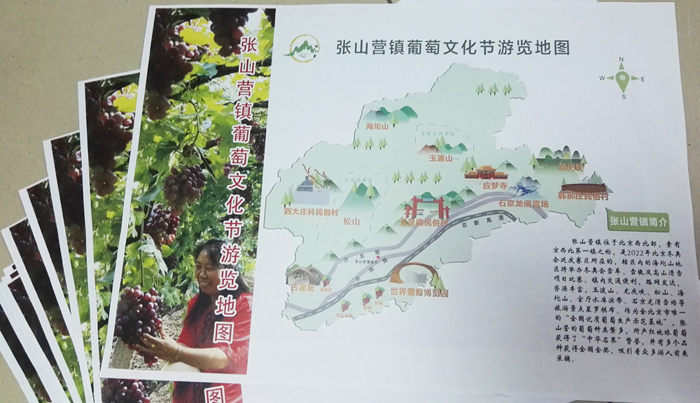 此項目任務要求時間短、任務重,我院師生利用業余時間前往張山營鎮實地勘查調研,對接項目細節,加班加點繪制地圖。經過幾天的繪畫和反復修改,最終順利完成了任務,為張山營鎮“葡萄文化節”添上光彩的一筆。