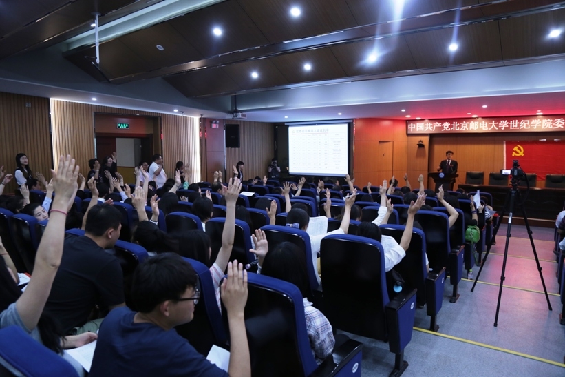 隨后,大會審議通過了北京郵電大學(xué)世紀(jì)學(xué)院黨員大會選舉辦法(草案)、候選人名單和總監(jiān)票人、監(jiān)票人名單,宣讀了計(jì)票人名單。接著,全票通過的總監(jiān)票人李凱主持選舉工作。監(jiān)票人當(dāng)場檢查票箱。工作人員分發(fā)選票。總監(jiān)票人宣讀選票注意事項(xiàng)之后,全體與會黨員行使神圣權(quán)力,采取無記名投票方式和差額選舉辦法,選舉出王卉、孫凱、劉朋輝、李杰、李新松、李保升、周偉、夏素霞、謝苗峰(以姓氏筆畫排序)九位同志為第三屆黨委委員,孫凱、秦罡引、樊薇(以姓氏筆畫排序)三位同志為紀(jì)委委員。選舉大會嚴(yán)謹(jǐn)有序,公開公正。主持人宣讀選舉結(jié)果后,全場響起熱烈的掌聲。