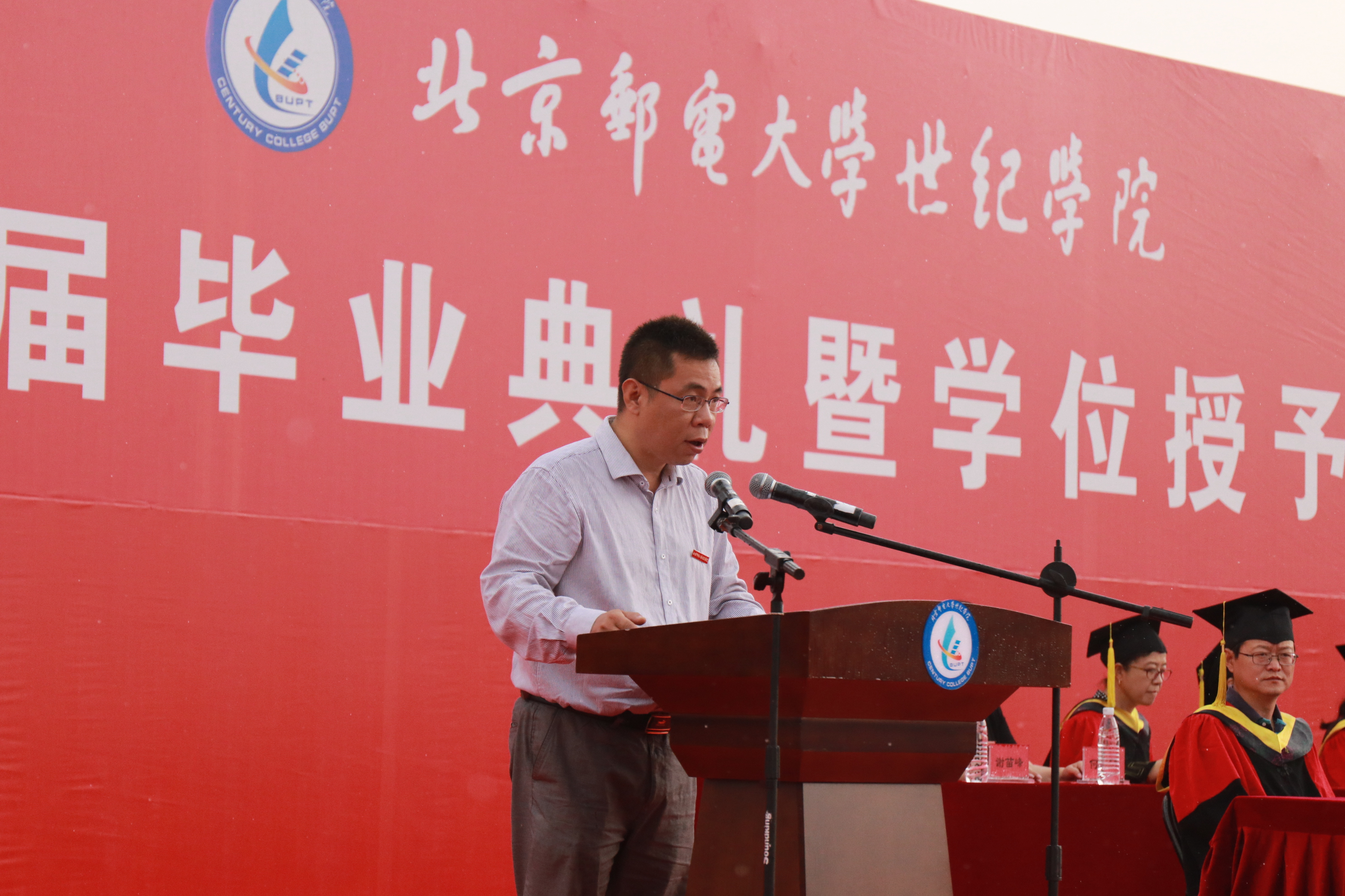晨風輕拂,樂曲飛揚,千余人歡聚一堂。北京郵電大學副校長、世紀學院院長李杰,學院黨委書記謝苗峰,副院長李新松、夏素霞、何曉玫,學位委員會委員,各教學單位和相關(guān)職能部門領(lǐng)導、教師代表,畢業(yè)班輔導員,畢業(yè)生代表以及特別邀請的100余位畢業(yè)生家長代表等出席典禮,一起見證了世紀學子完成學業(yè)、開啟人生新征程的重要時刻。