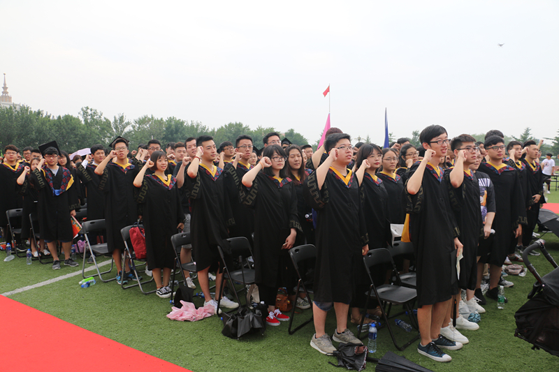 同時,為進一步增強畢業(yè)生的社會責任感和歷史使命感,典禮上,全體畢業(yè)生面向國旗、院旗,莊嚴宣誓:“銘記師長教誨、弘揚世紀精神,崇尚奉獻、追求卓越……”激昂的聲音響徹典禮現(xiàn)場。
