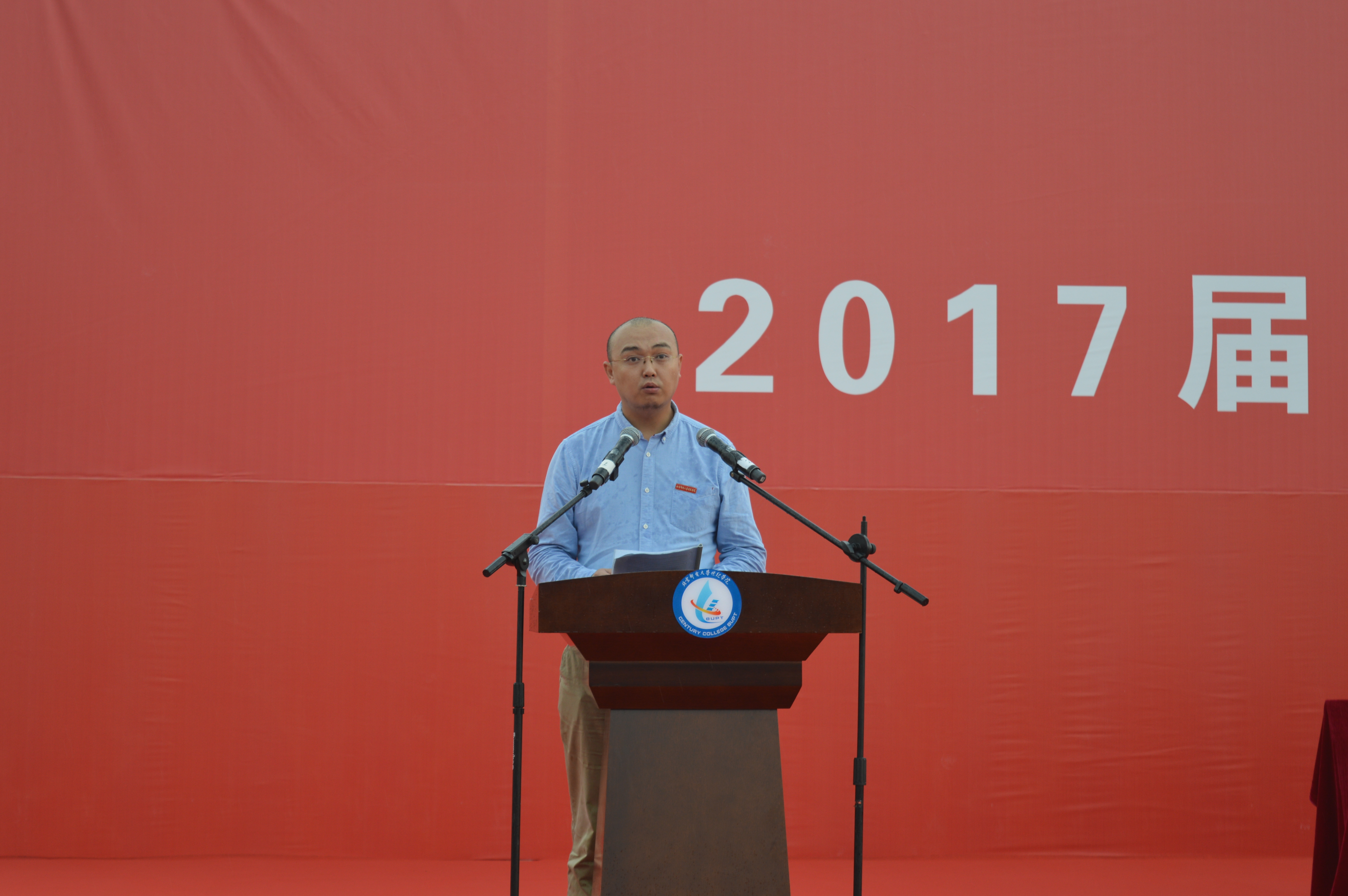 藝術(shù)與傳媒學院馬天容老師作為教師代表發(fā)言。他結(jié)合自己的工作、生活經(jīng)歷,送上了臨別寄語,希望即將踏上新征程的畢業(yè)生們,保持身心健康、學會感恩父母、重視修為德行。