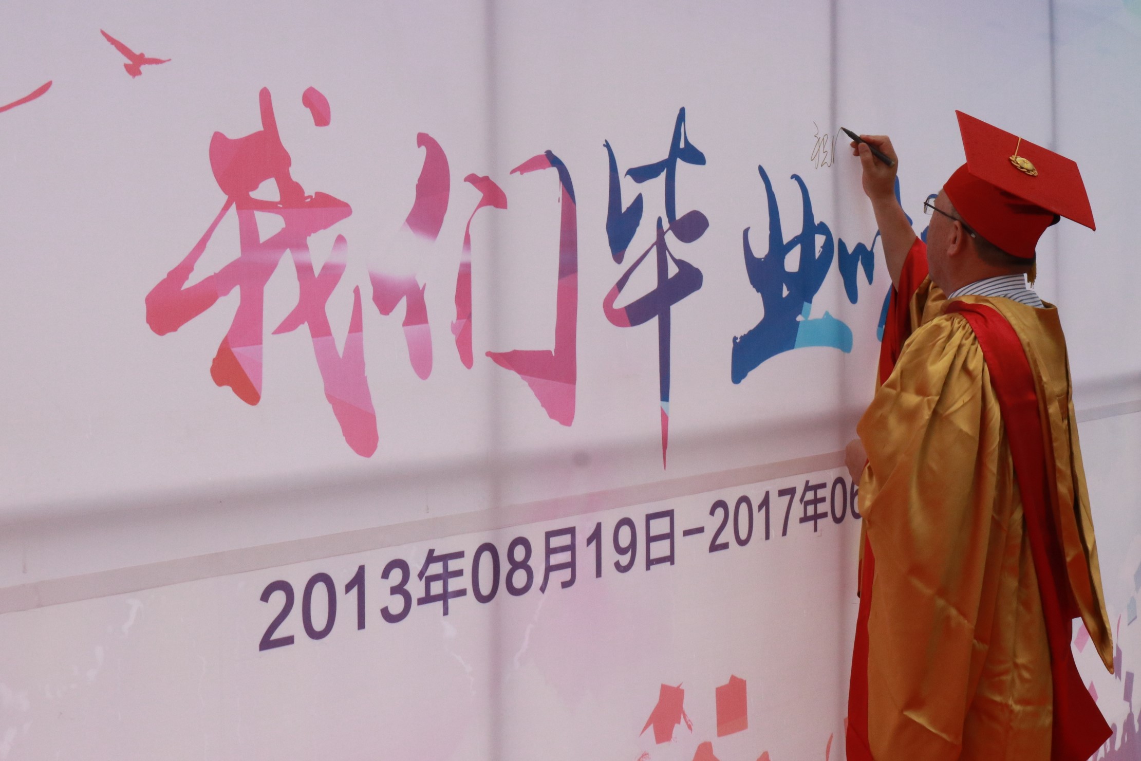 在鋪滿紅毯的草坪上,學院領(lǐng)導、學位委員會委員、畢業(yè)生等依次走上紅毯,并在簽名板上留下了自己的姓名與寄語。李杰院長深情寫道:“祝同學們努力長成參天大樹!”飽含了對畢業(yè)生們的衷心祝福。