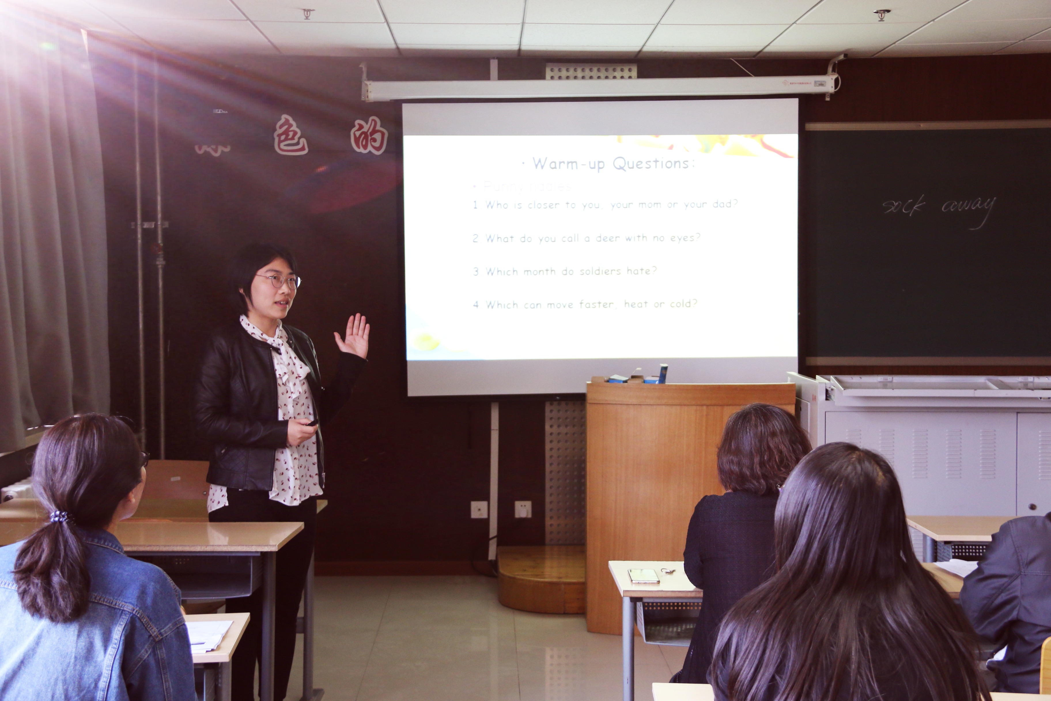 2019年5月10日,外語系在明德樓224室舉辦了第十屆“外教社杯”全國高校外語教學大賽初賽選拔參賽,有劉倩、莊曉旭、程呈、張玲玉四位老師參賽,外語系主任秦罡引和各位教研室主任為此次比賽的評委,全體教師參加了本次選拔賽的觀摩。