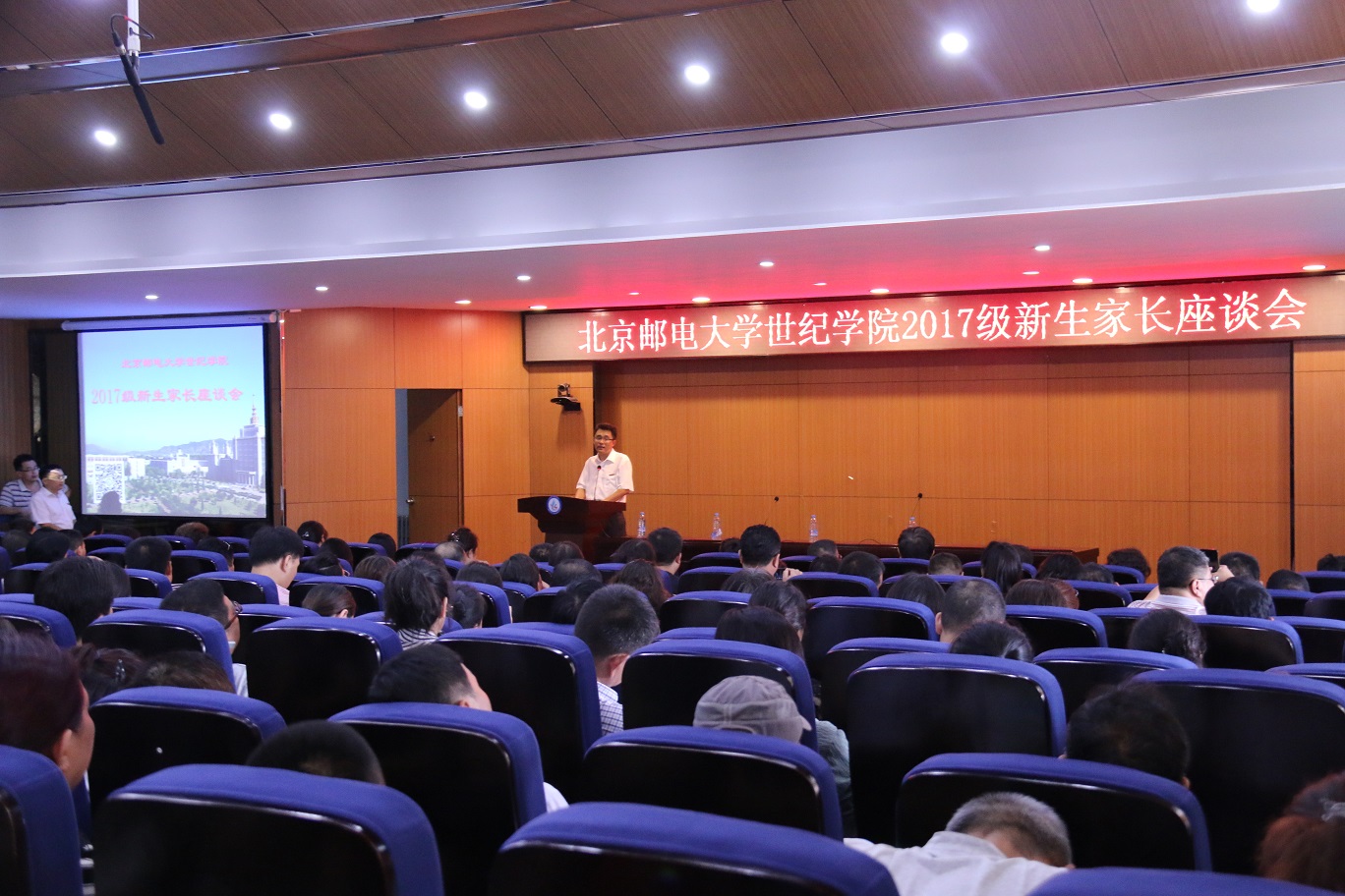 經(jīng)歷了數(shù)日的雷雨天氣,我們終于迎來了萬里晴空,8月17日,2017級新生順利來院報道。下午13:30,學(xué)院在學(xué)思樓229報告廳組織召開了2017級新生家長座談會,學(xué)院黨委副書記兼副院長孫凱,副院長夏素霞、何曉玫以及部分職能部門、教學(xué)單位負責(zé)人出席了會議。會場座無虛席,許多家長都站在會場后方和兩側(cè)參與互動。學(xué)院綜合辦公室主任周偉主持會議,向各位家長和新生表示熱烈歡迎。