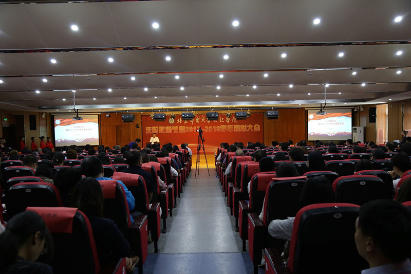 在雄偉的國歌聲中,大會正式開始。與會領導分別為2016、2017年師德先進個人,2017-2018學年突出貢獻獎獲得團隊、優秀干部、優秀教職工、優秀輔導員、教學獲獎教師、學科競賽優秀指導教師、畢業設計(論文)優秀指導教師頒發了榮譽證書并合影留念。