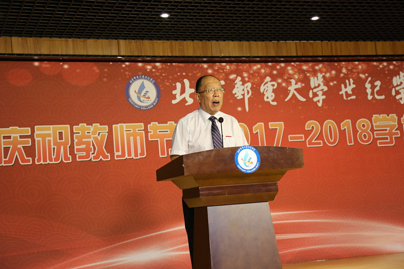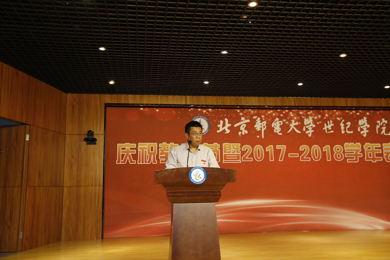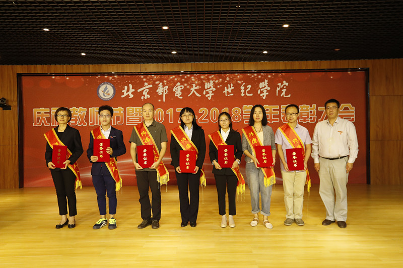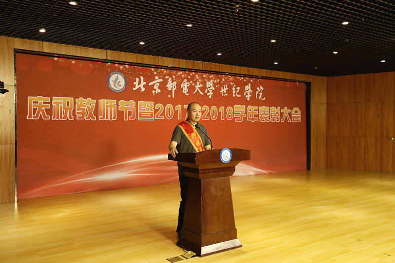 9月7日,在第34個教師節來臨之際,學院隆重舉行慶祝教師節暨2017-2018學年表彰大會。北京郵電大學副校長、院長李杰,學院黨委書記謝苗峰,副院長李新松、孫凱、何曉玫及黨委委員、全體教職員工齊聚學思樓127報告廳,共同慶祝教師們自己的節日。大會由綜合辦主任周偉主持。