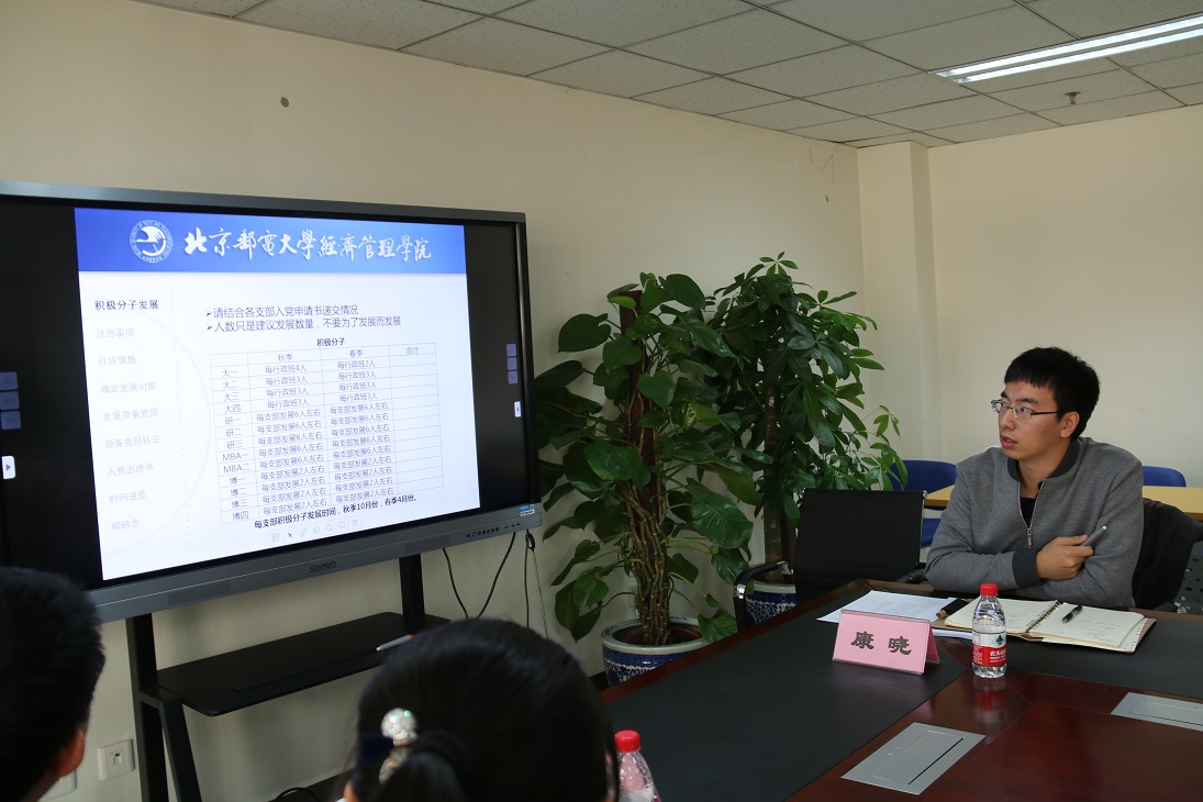 會上,首先學習了經管院發(fā)展黨員的具體流程和規(guī)范動作,我院支部書記全面了解了對方發(fā)展黨員工作的先進經驗和優(yōu)秀做法。隨后雙方就黨建帶團建、黨員培養(yǎng)、積極分子隊伍建設等方面的工作做了交流匯報,同時經管院的老師們也就我院支部書記提出的工作困惑給出了相應建議。
