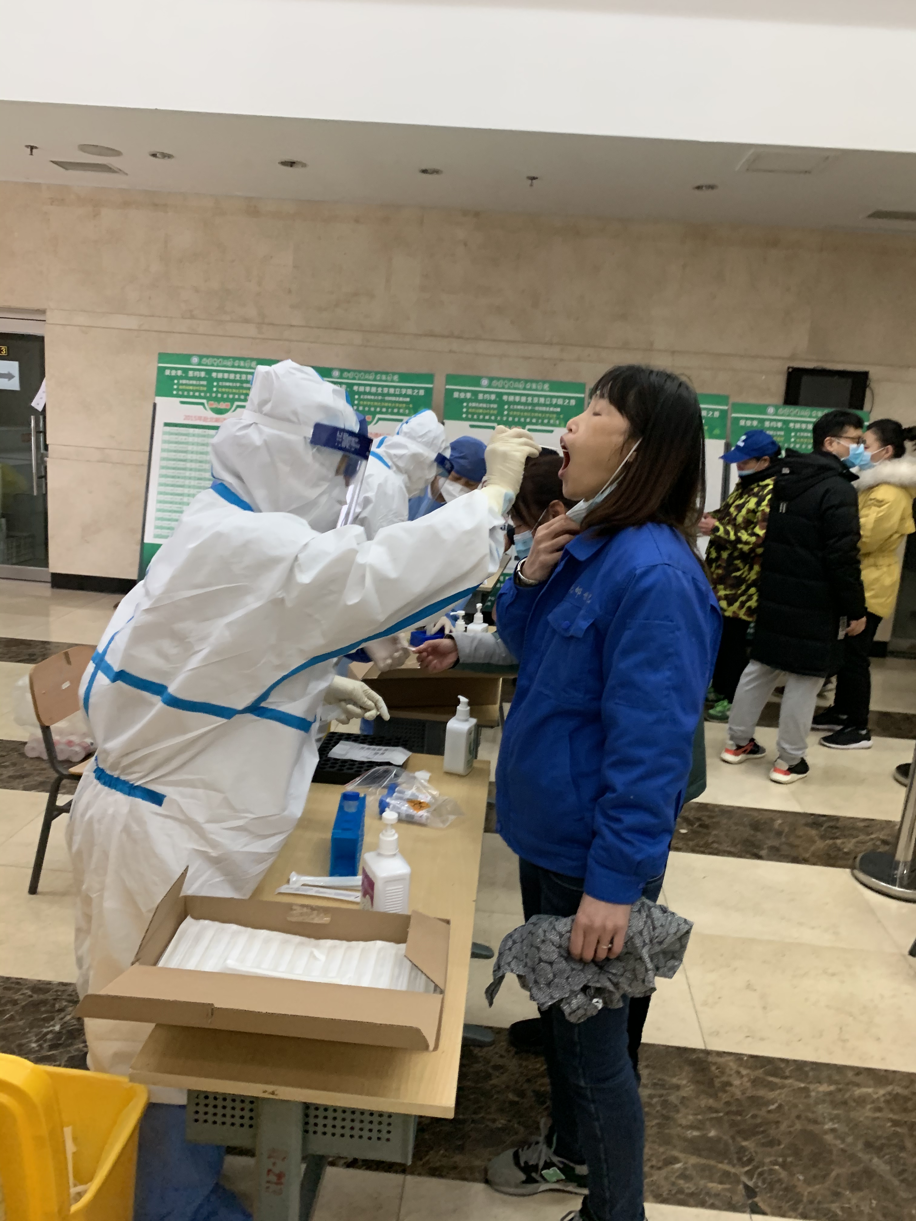 根據上級工作要求及學院工作部署,確保師生返校工作平穩順利,2021年3月12日下午,經后勤處聯系及組織,北醫三院延慶醫院醫務工作者對我院公共服務人員進行了集中核酸檢測。
