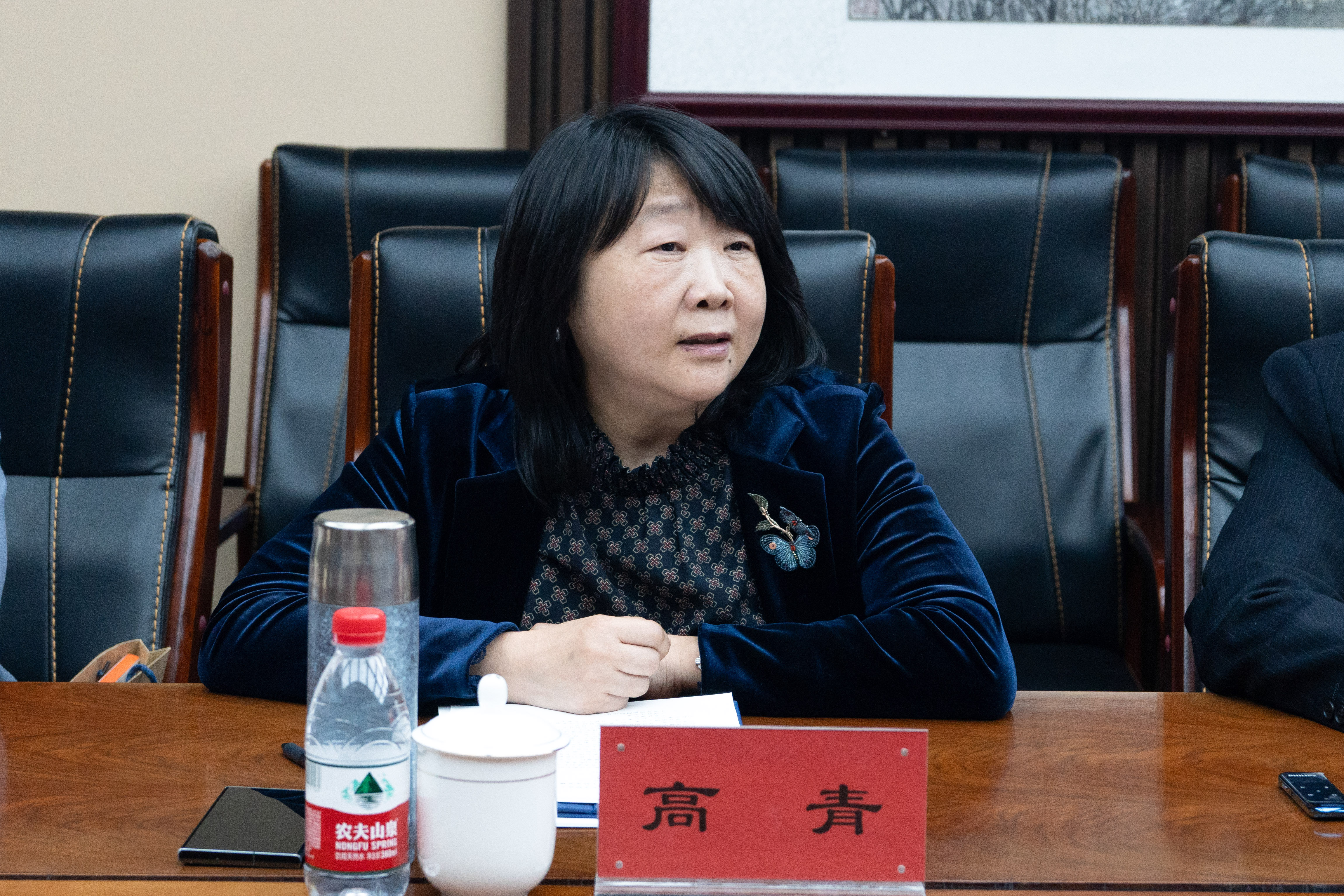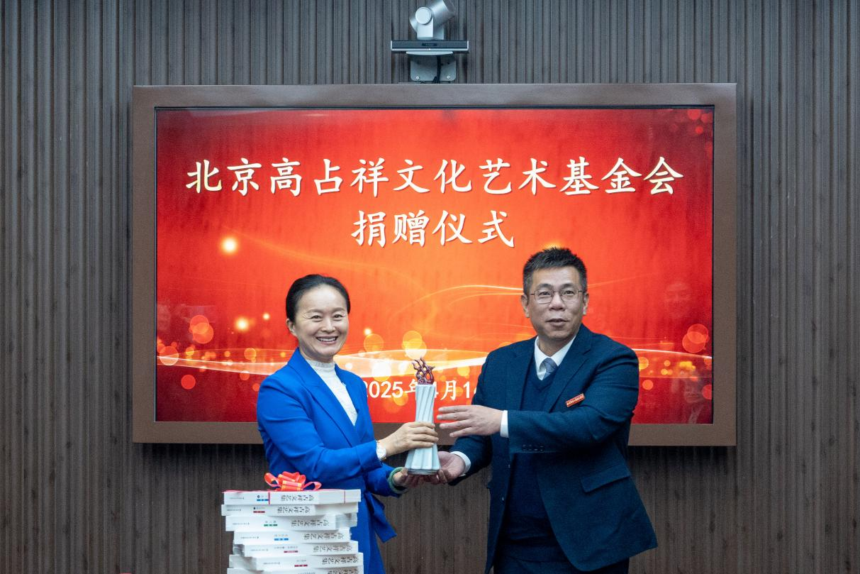 高青主任作為高占祥先生之女,向大家詳細介紹了此次捐贈的144冊《高占祥文藝集》,并表示這套文集凝聚了其父親畢生的文藝創作與思想精髓,承載了他“啟智育人”的夙愿和對青年一代“以文化人、以美育人”的赤誠初心,傳遞了他對文藝事業的赤誠與哲思,希望能夠成為學子探索藝術真諦的階梯,激勵新一代青年人傳承文化薪火。