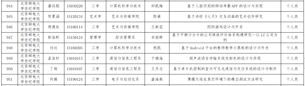 我院共推薦八篇畢業設計(論文)參加2019年北京市普通高等學校優秀本科生畢業設計(論文)。佳報傳來,八篇均被評為北京市普通高等學校優秀本科生畢業設計(論文),具體獲獎名單如下: